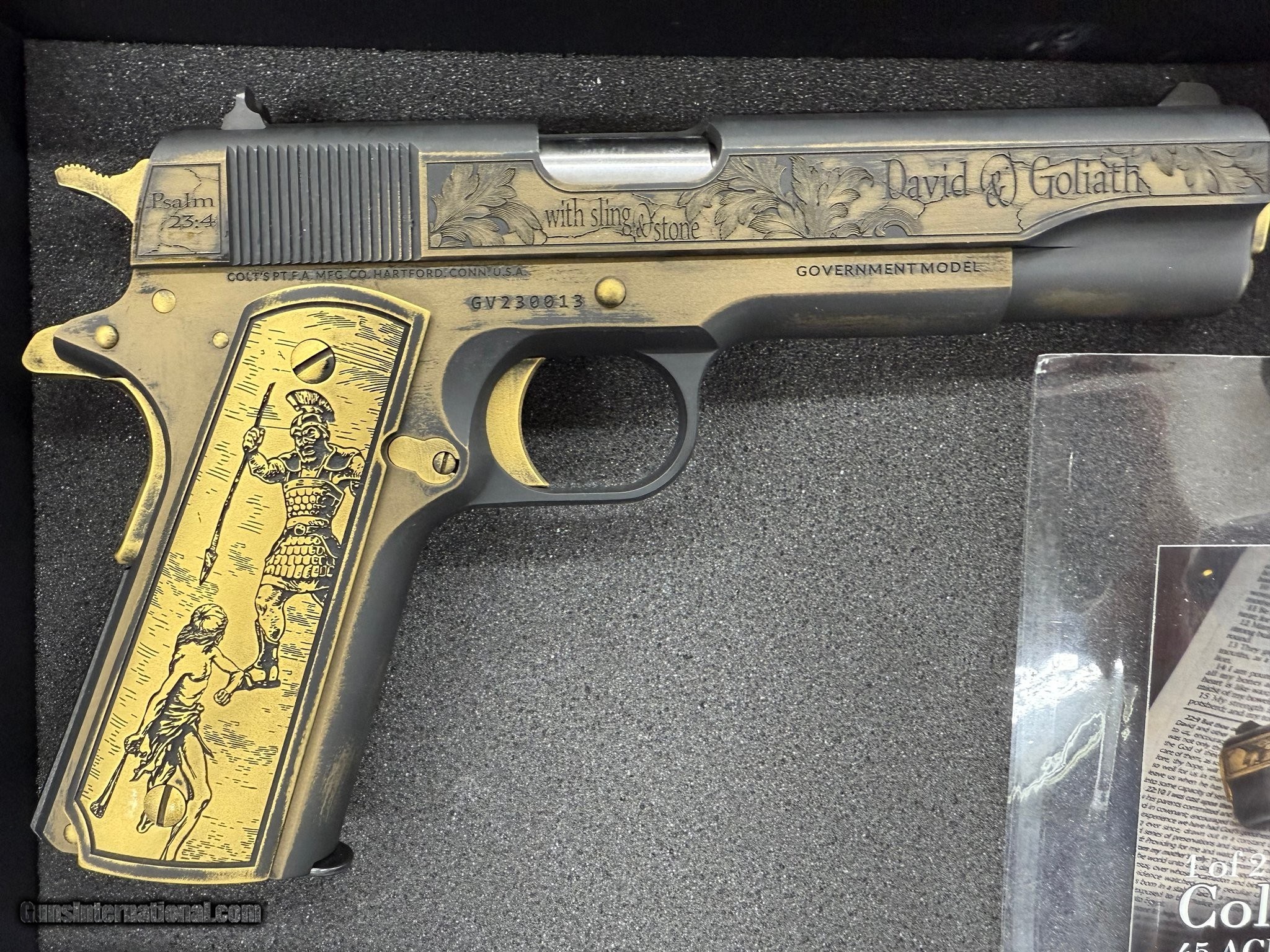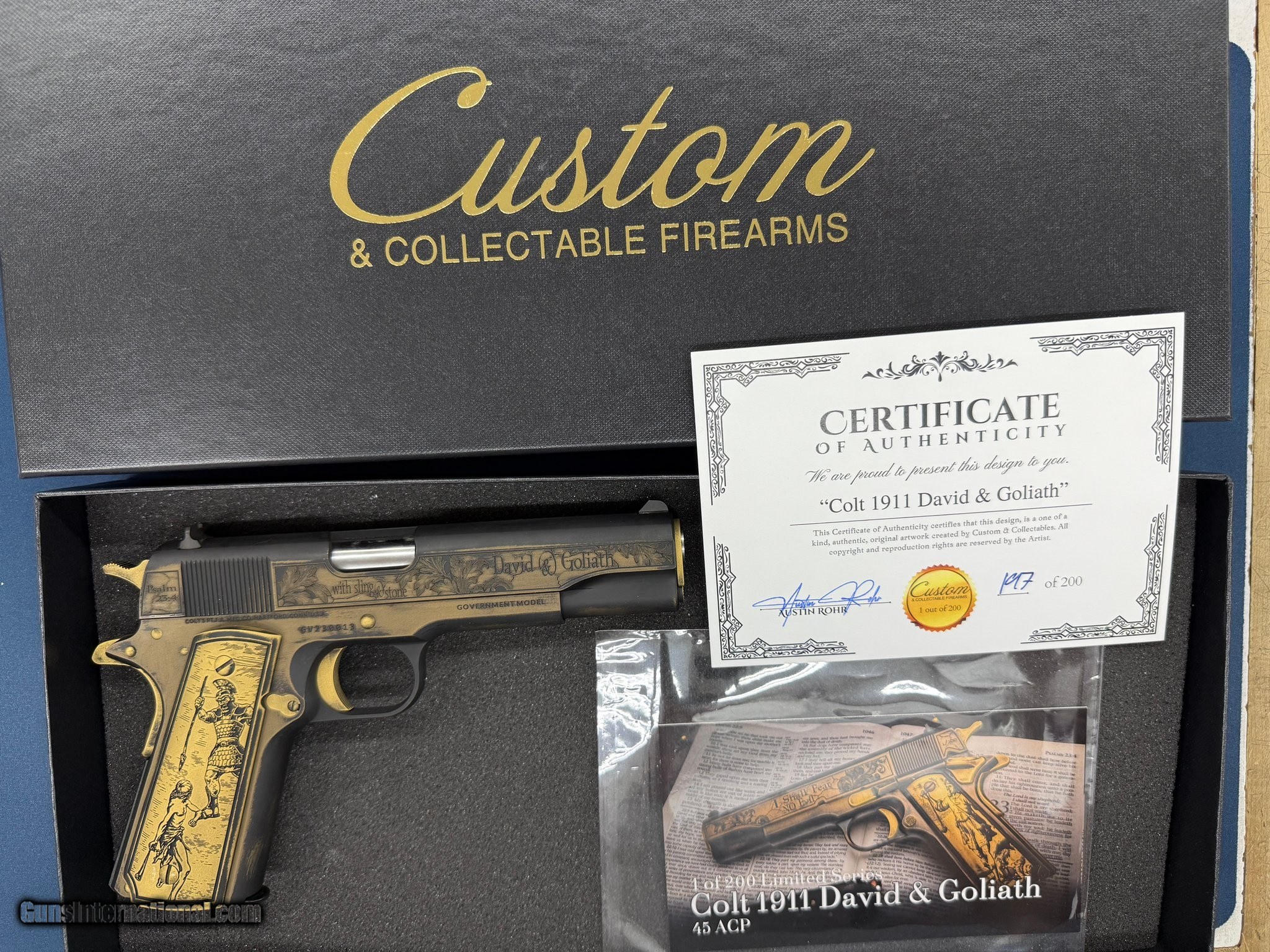 Description: Guns Listing ID: 517998 This is a brand new gun. It is a custom colt 1911 chambered in 45 acp. David & Goliath limited edition, only 200 were made. Comes with certificate of authenticity. #197/200. Very nice gun!!! Manufacturer: COLT Model: 1911 David & Goliath Caliber Info: .45 ACP Condition: Used - Non-Certified Barrels: 5" BARREL Action: SEMI AUTOMATIC Finish: BLACK AND BRONZE Price: $2,699.99 Contact Seller |