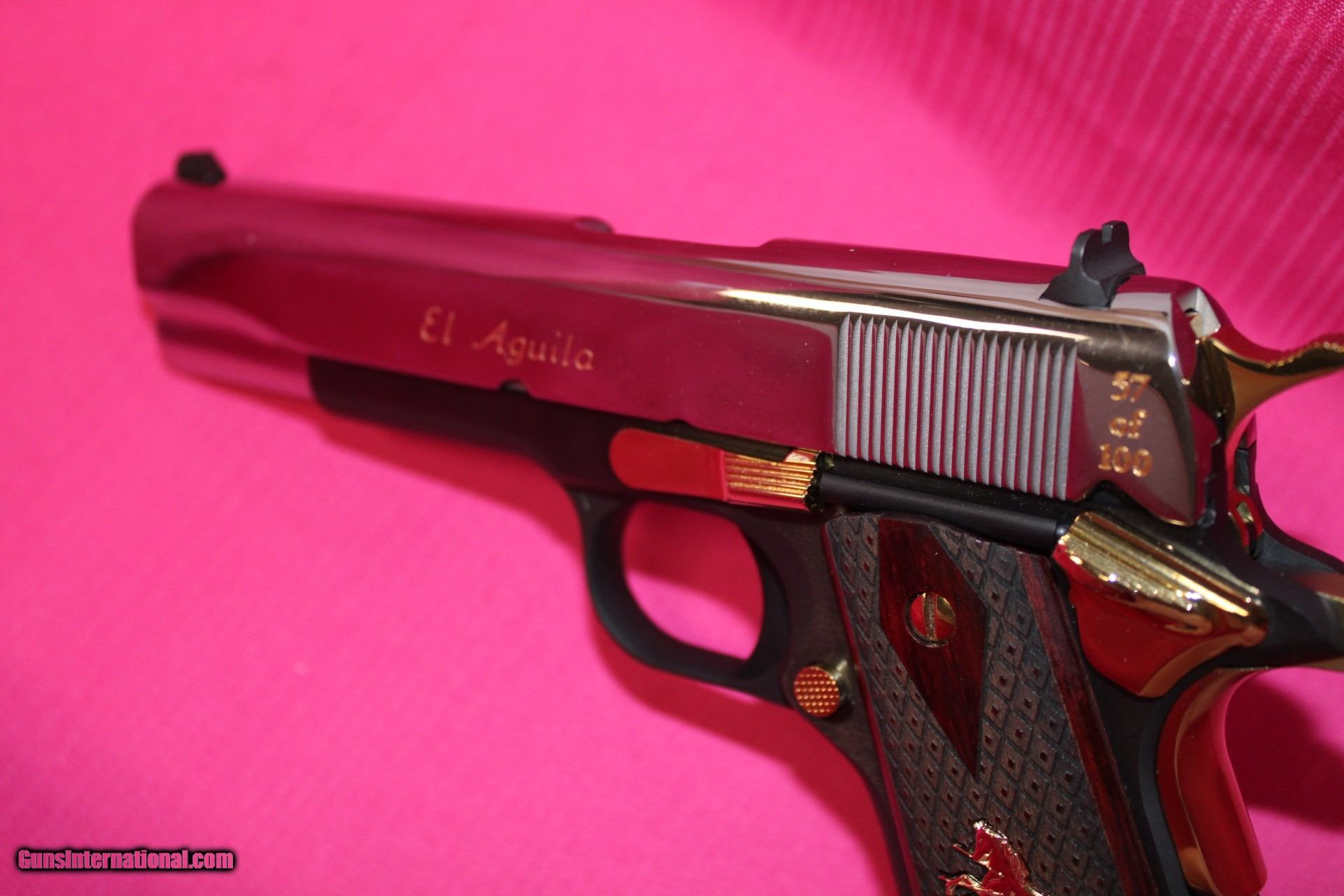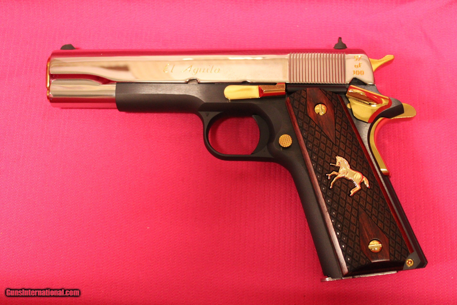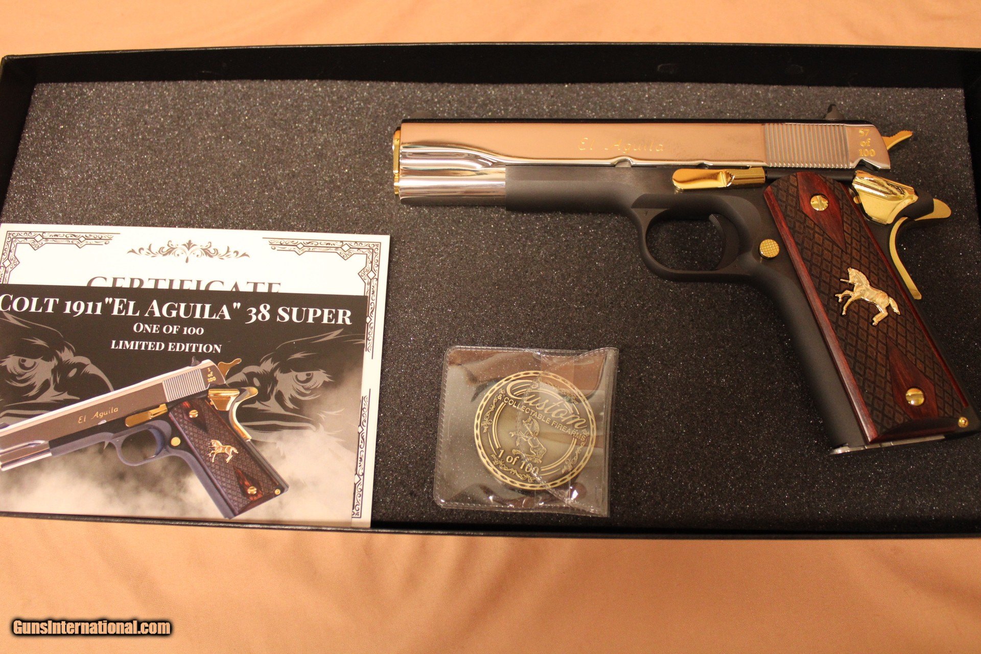 Description: Colt 1911 in 38 Super with 5" barrel, polished slide with gold accents, vintage style rollmark on RH side with "El Aguila" on the LH side. Pistol is brand new with box and 1 mag. #57 of 100 *Legendary Guns in Phoenix AZ 602-242-1195 Hours of operation Tuesday-Friday 10-6 Sat 10-5 Closed Sundays & Mondays *We accept all Major credit cards. We DO NOT charge an additional fee for Credit Cards. We also accept Postal Money orders or Certified Bank Checks{Check & Money order payments must arrive within 7 days of initial agreement and will be held for 3 days before items are shipped} *Shipping is $50 for rifles/shotguns {AK & HI Extra} and $35 for handguns. Arizona Residents Must Pay Sales Tax. We DO NOT ship Internationally. *We offer a 60 day layaway on purchases of $500 or more. Items require 1/3 of the total price as down payment which is NON-REFUNDABLE and you have 60 days to pay off the balance. *Please call or email with any questions and to confirm availability before buying. We are happy to answer all questions. All items listed are also for sale at our Phoenix, AZ location *We offer a 3 day inspection period on USED FIREARMS ONLY, We accept returns within the 3 day inspection period with NO REFUNDS ON SHIPPING CHARGES and a 10% restocking fee. *Trades are welcome for customers who can visit our Phoenix, AZ location, We DO NOT engage in online or mail in trades. SOLD Handgun Caliber: .38 Super Auto Manufacturer: Colt Model: 1911 Condition: New |