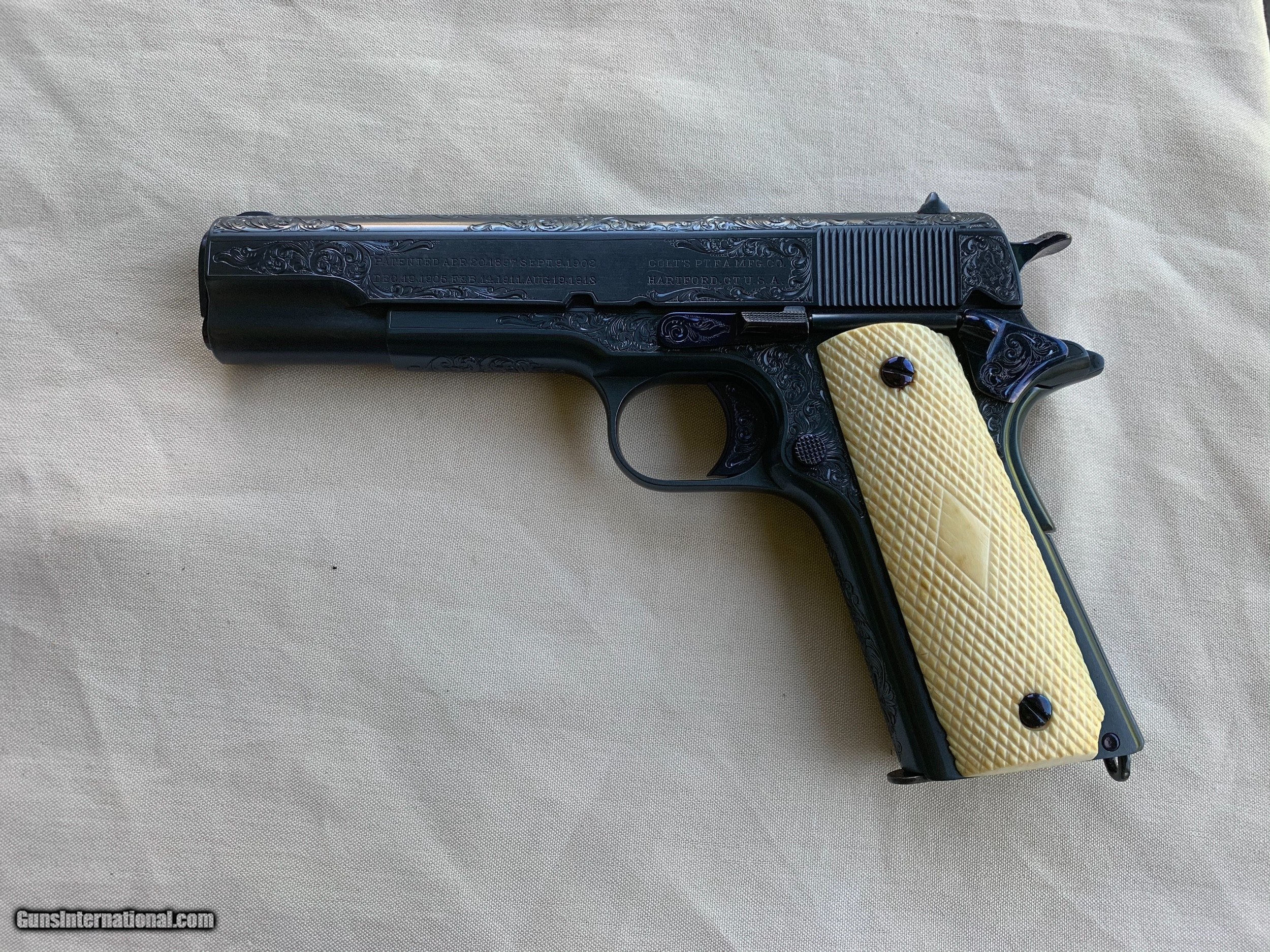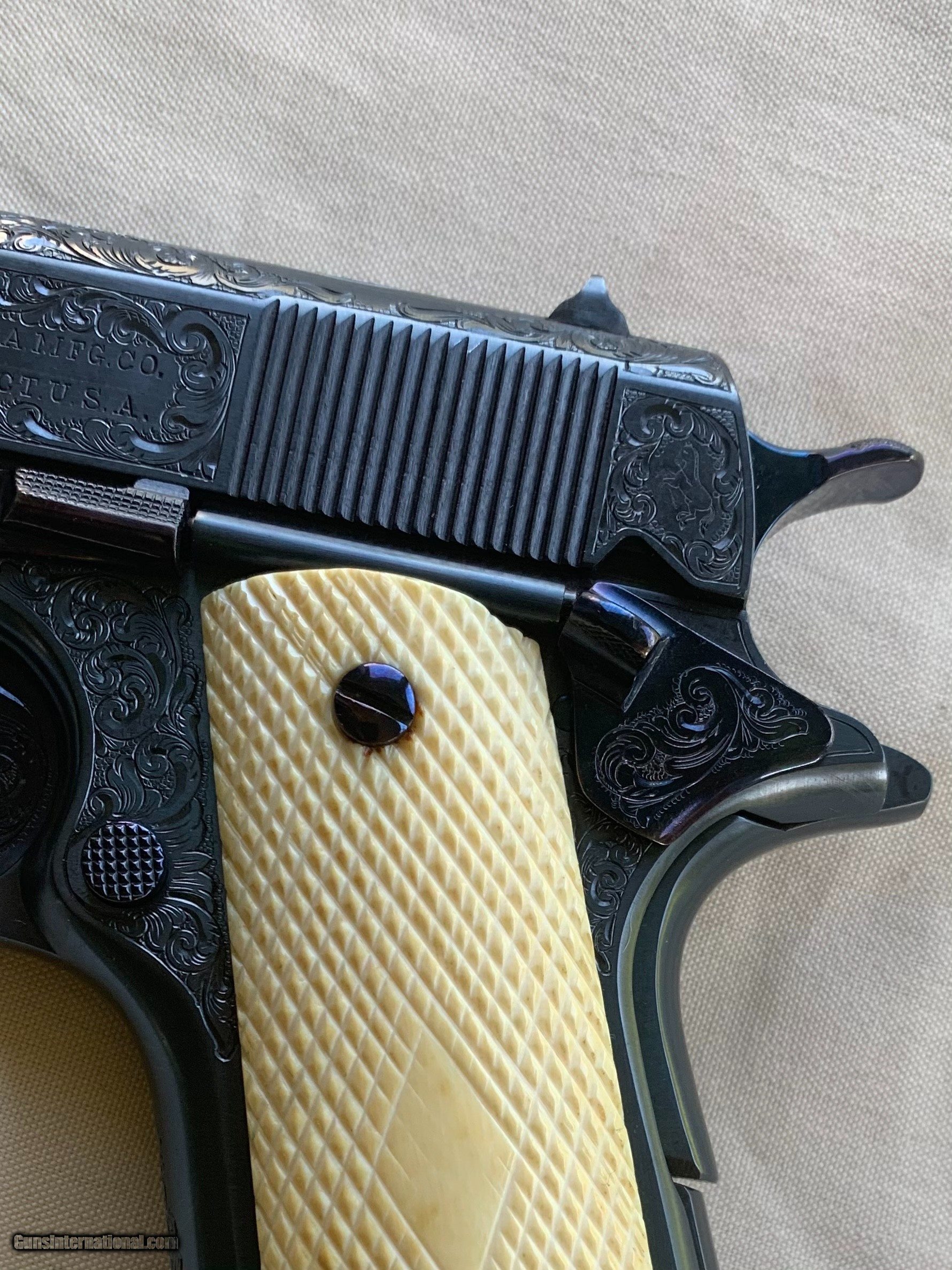 Description: Colt 1911 made in 1917 . Serial number 175511 . Custom Engraved by Master Engraver John Schultz! This is some of his best Work ! Ivory checkered grips are fantastic. Bore and mechanics are like new condition . 100 percent of the finish still remaining . Full coverage engraving . With fine tight scroll Engraving. Stunning Example of a early 1917 Colt 1911 . Please review my photos and email me with any questions ? 3 day inspection as allways . Thank you for looking Little Jo SOLD Curio/Relic: Yes Handgun Caliber: .45 ACP (.45 Auto) Manufacturer: Colt Model: 1911 Serial Number: 175511 Condition: Mint |