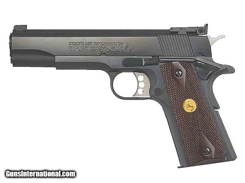 Description: Manufacturer: Colt's Manufacturing Co. Model: 1911 Gold Cup National Match SKU: O5870A1 Caliber: .45 ACP Capacity: 8 Rounds Barrel: 5" National Match Grade Finish: Blued/Black Frame: Steel Overall Length: 8.5" Sights: Dovetail Post - Front, Adjustable Bomar Style - Rear Grips: Double Diamond Rosewood Weight: 37 oz All items are factory new in box unless otherwise stated. Based on the information available to us, the above specifications describe this item to the best of our knowledge. For further information, please contact or visit the manufacturer's . SOLD |