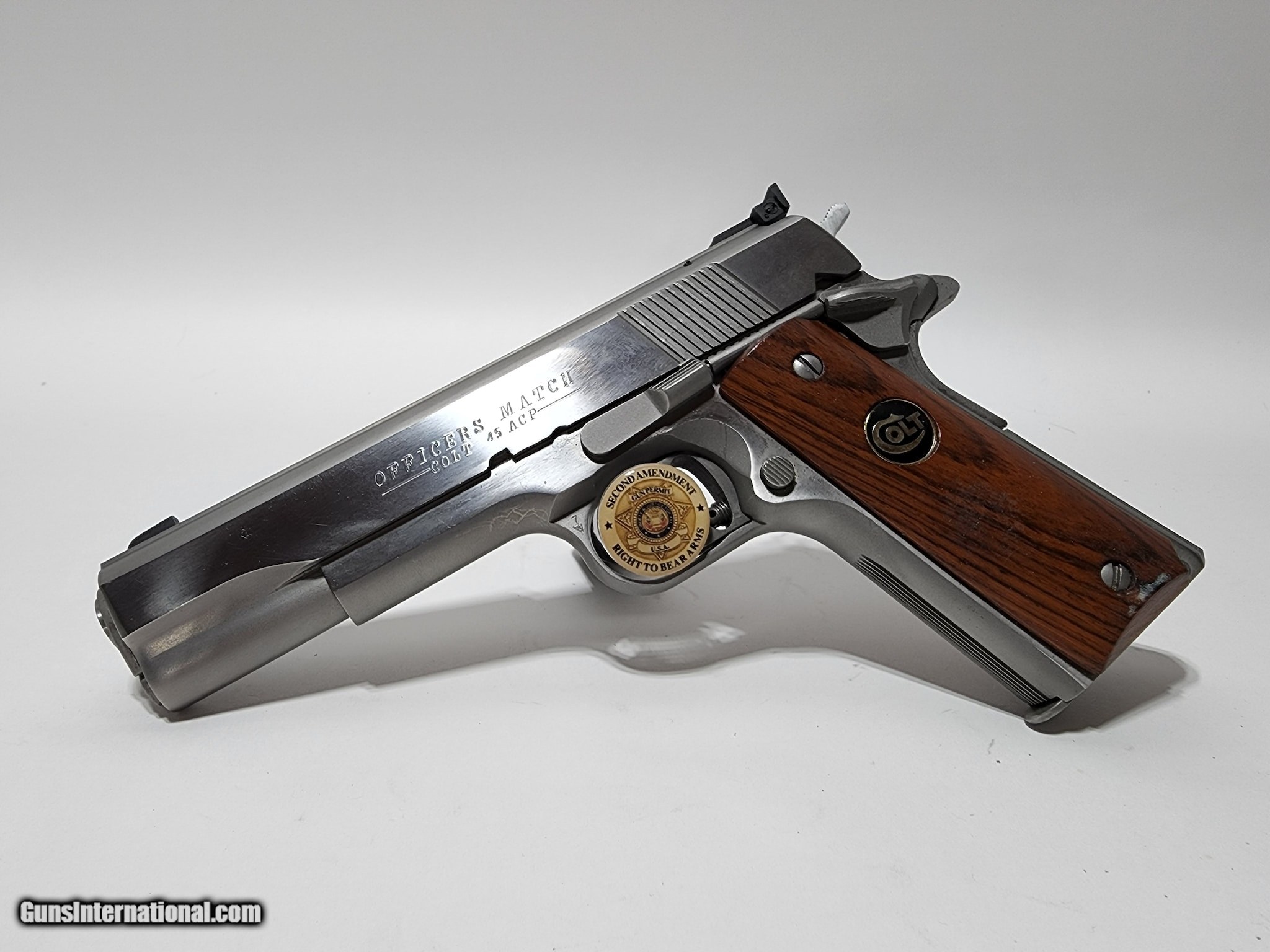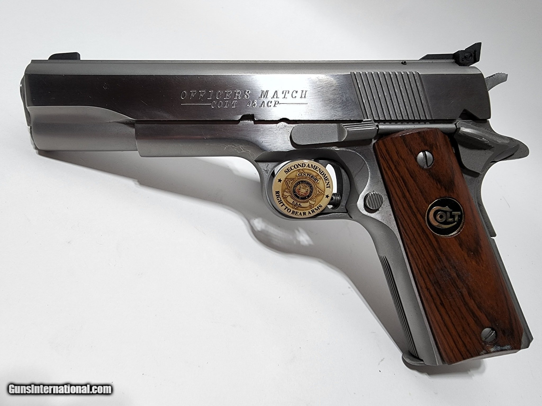 Description: Guns Listing ID: 536440 Rare Colt Gold Cup Officers Match Pistol in .45 ACP. Comes with all original packaging. In like New Condition. This one was made in the 1980‚‚ SOLD Manufacturer: COLT Model: 1911 Gold Cup National Match Caliber Info: .45 ACP Condition: Used - Non-Certified Barrels: 5 BARREL Finish: STAINLESS |