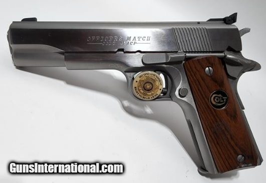 Description: Guns Listing ID: 848517 Rare Colt Gold Cup Officers Match Pistol in .45 ACP. Comes with all original packaging and serial# matching short slide. In like New Condition. This one was made in the 1980‚‚ SOLD Manufacturer: COLT Model: 1911 Gold Cup National Match Caliber Info: .45 ACP Condition: Used - Non-Certified Barrels: 5 BARREL Finish: STAINLESS |