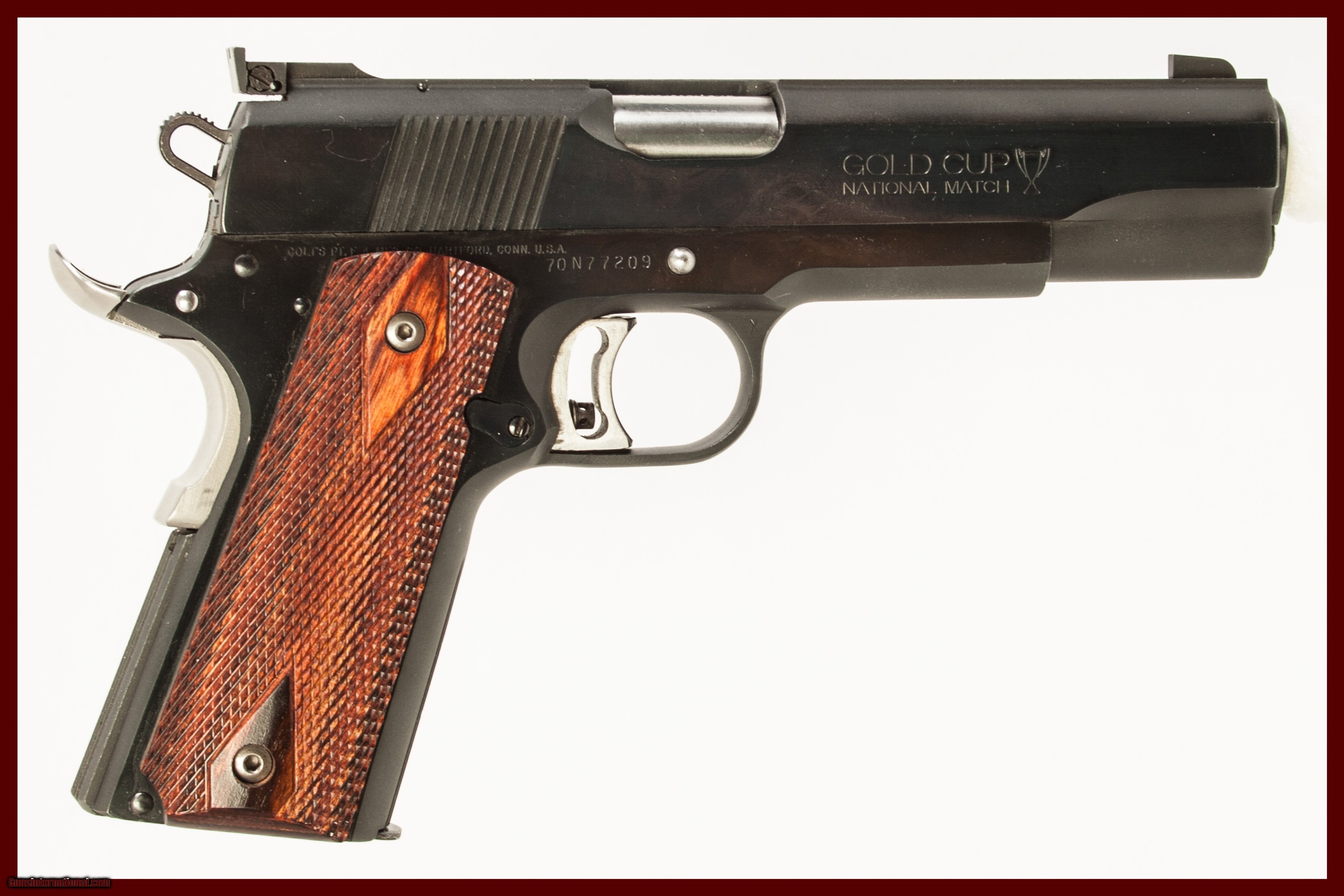 COLT 1911 GOLD CUP NATIONAL MATCH CHAMBERED IN 45ACP WITH A 5 INCH BARREL COMES WITH COLT BOX AND 1 EXTRA MAG. THIS GUN IS IN GOOD CONDITION AND IS COVERED BY DURY'S LIFETIME WARRANTY.