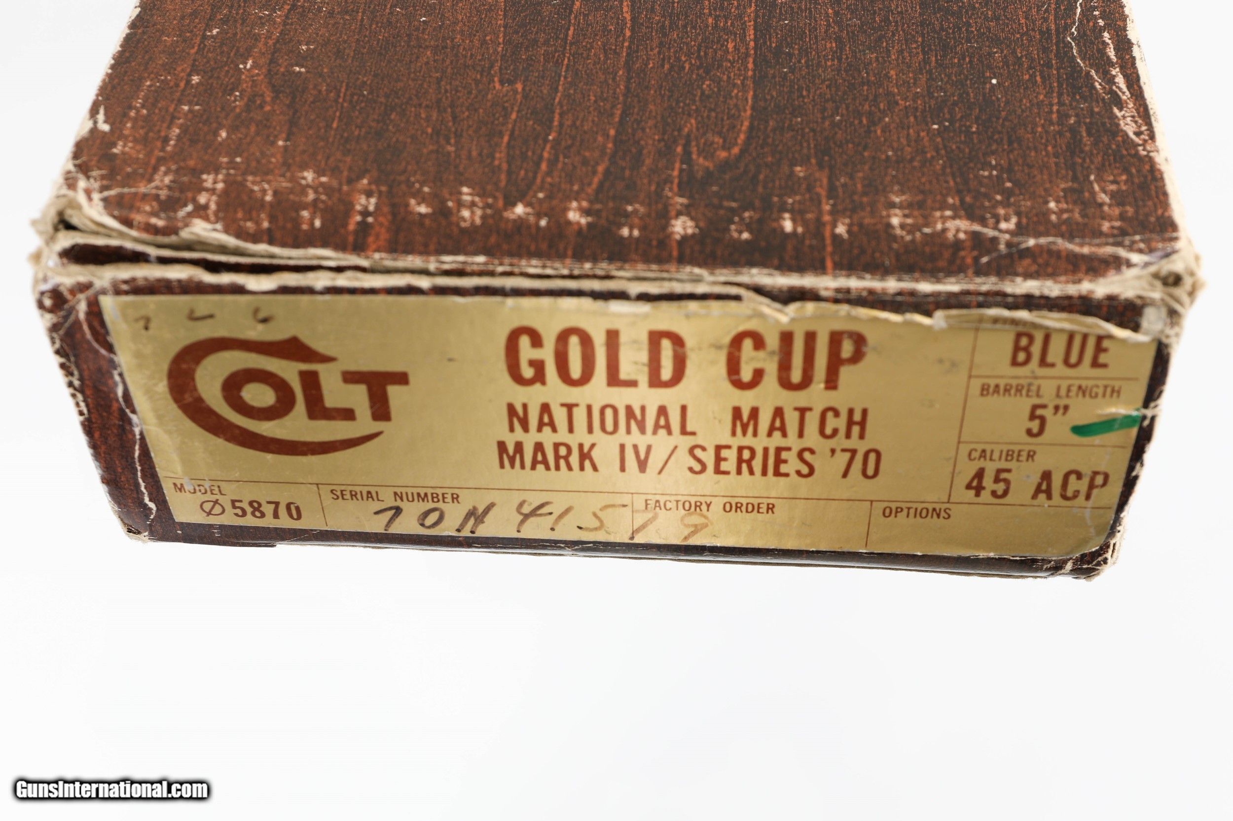 SOLD Manufacturer: COLT Model: 1911 GOLD CUP NATIONAL MATCH Serial Number: 70n415XX Caliber Info: 45 ACP Condition: EXCELLENT |