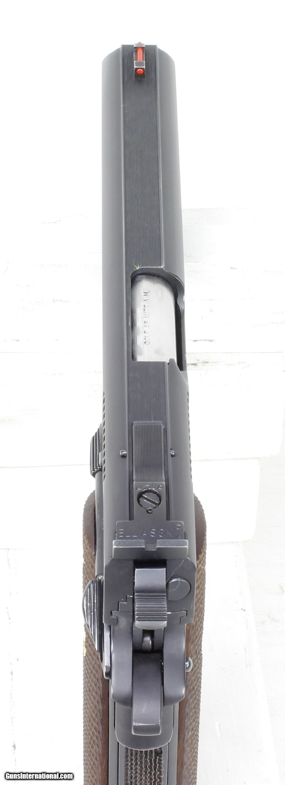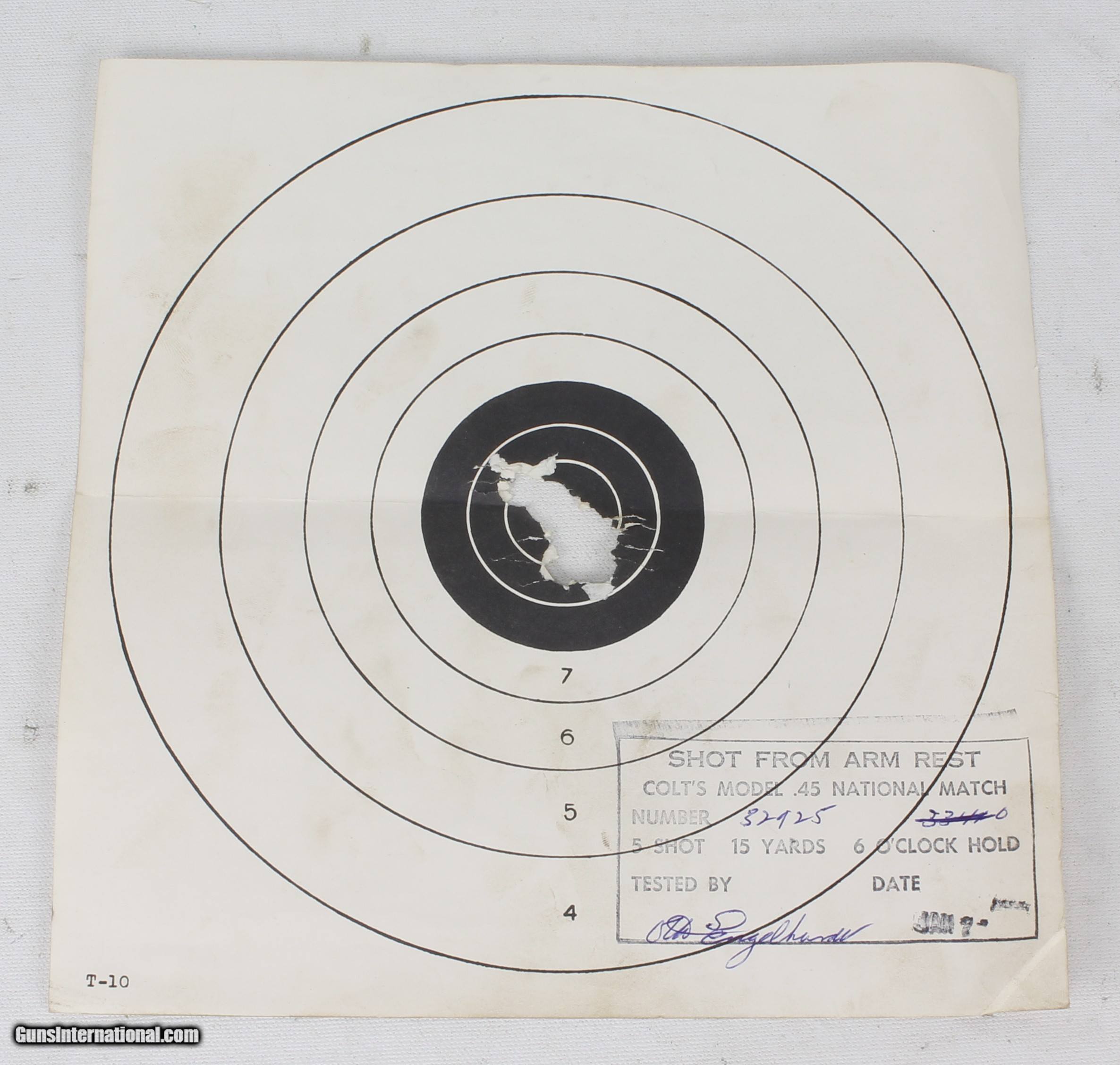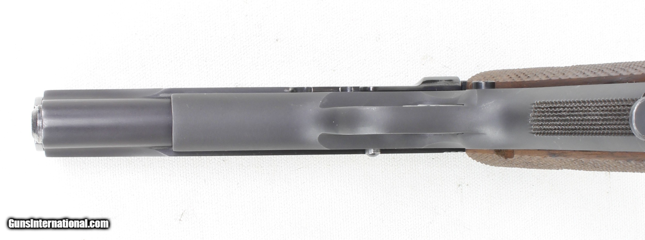 Description: Colt 1911 Gold Cup National Match Semi-Auto Pistol in .45ACP. SN #32925-NM. Mfg. in 1969. 5" Barrel with an EXCELLENT Bright Bore with Strong Rifling. The Royal Blue Metal Finish is in EXCELLENT condition as are the Checkered Walnut Grips with Rampant Colt Gold Medallions. Fiber Optic Front Sight Post and Adjustable Rear Sight. Adjustable Trigger. 7 Shot Magazine Capacity. Comes in the Correct Box but is NOT Original to the Gun. Includes Test Fire Target. Weight: 2.3 lbs. Trigger Pull: 3 3/4 lbs. Ships to Lower 48 W/ Insurance $45.00. SOLD Curio/Relic: Yes Handgun Caliber: .45 ACP (.45 Auto) Manufacturer: Colt Model: 1911 Gold Cup National Match Serial Number: 32925-NM Barrel Length: 5 Condition: Excellent Metal Condition: Excellent Wood Condition: Excellent Bore Condition: Excellent Action: Semi-Auto Finish: Royal Blue Weight: 2.3 lbs Manufacture Date: 1969 |