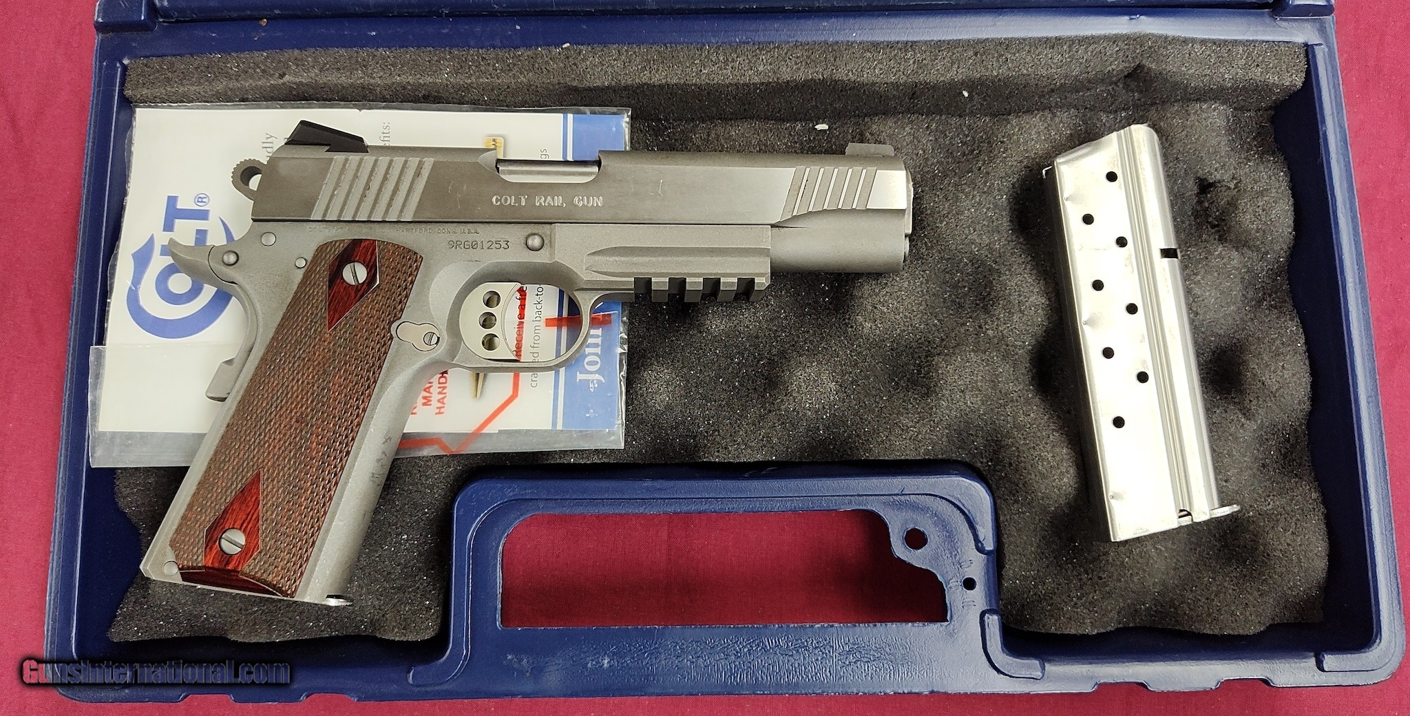 Description: Guns Listing ID: 973930 GUN IS IN EXCELLENT SHAPE, PLEASE LOOK AT ALL PHOTOS. SOLD Manufacturer: COLT Model: 1911 GOVERNEMENT RAIL GUN Caliber Info: .45 ACP Condition: Used - Non-Certified Barrels: 5 BARREL Finish: SATIN |