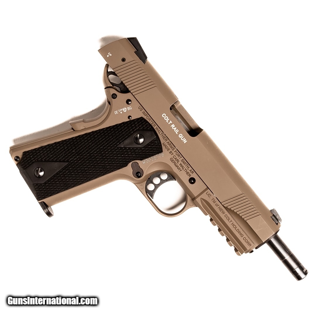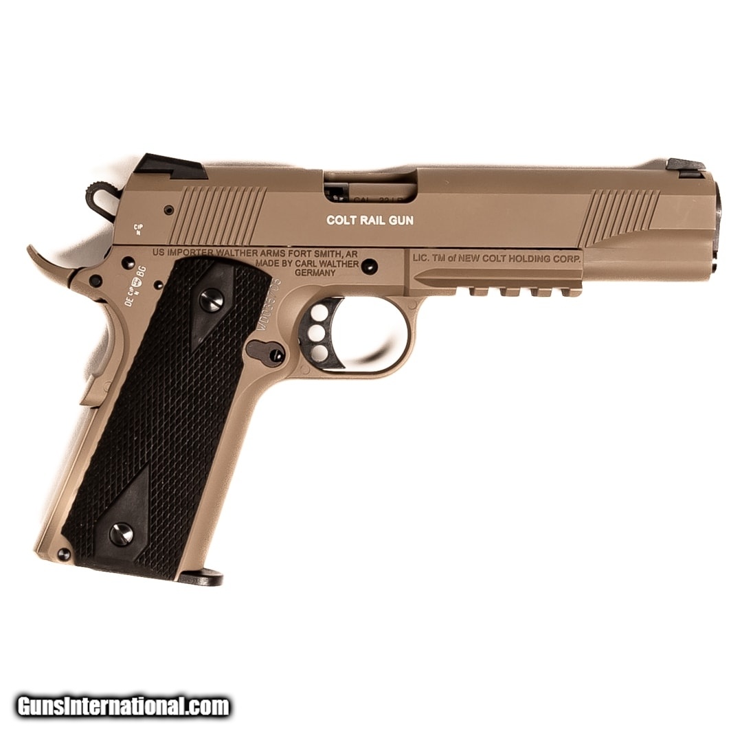 Description: Guns Listing ID: 787495 The Colt Rail Gun Government Model manufactured by Walther offers the classic configuration of the 1911 in a rimfire package. It makes a great plinker, target shooter, and training tool. This Government Model Rail Gun features a safety and includes the original case, manual, and one 10-round magazine. Get the best bang for your buck when you get a Certified Used Firearm . When you see the Certified Used stamp on any of our firearms, you can be confident that you’re getting exactly what you want – a gun only in very good to excellent condition and held to the highest quality standard. All Certified Used Guns come with a ‘no questions asked’ return policy . PLUS, ALL CERTIFIED USED GUNS SHIP FREE! SOLD Manufacturer: COLT Model: 1911 GOVERNEMENT RAIL GUN Caliber Info: .22 LR Condition: Used - Certified Barrels: 5 BARREL Finish: FDE |