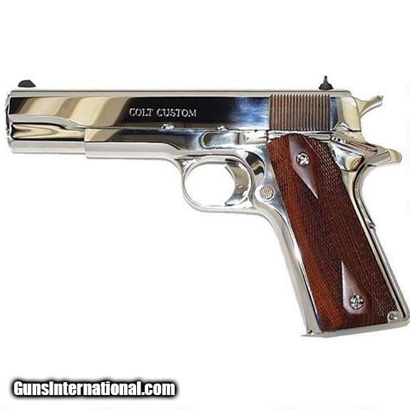 Description: BRAND NEW IN THE BOX AND READY TO SHIP! BUY IT NOW!! Manufacturer: Colt's Manufacturing Co. Model: 1911 Stainless Steel Government Pistol SKU: O2071ELC2 Caliber: .38 Super Capacity: (2) 9 Round Magazines Barrel Length: 5" Frame & Slide: Bright Stainless Steel Overall Length: 8.5" Sights: High Profile 3-Dot Grips: Double Diamond Rosewood Weight: 37.5 oz The Colt 1991 series is a direct descendant of the original Colt M1911. A long trigger, flat mainspring housing, and original style recoil spring system remain from the original M1911 design. This Series 80 Government pistol features high profile sights with dots, a lowered ejection port for extra reliability, a spur hammer, a standard safety lock, a standard grip safety, and a slide with bright stainless steel finish. This 38 Super model features a high polished stainless steel frame and slide. KNOW YOUR LOCAL AND STATE LAWS!! ORDERS WILL ONLY BE ACCEPTED FROM US RESIDENTS OF THE LOWER 48 STATES, ALASKA AND HAWAII. OUR FFL CLASS DOES NOT ALLOW FOR THE EXPORT OF FIREARMS, THEREFORE WE CANNOT SHIP OUT OF THE US. IF YOU ARE INTERESTED IN PURCHASING THIS ITEM, PLEASE COMPLETE YOUR ORDER BY REFERRING TO THE "SELLER'S INFORMATION" ABOVE. SOLD Handgun Caliber: .38 Super Auto |