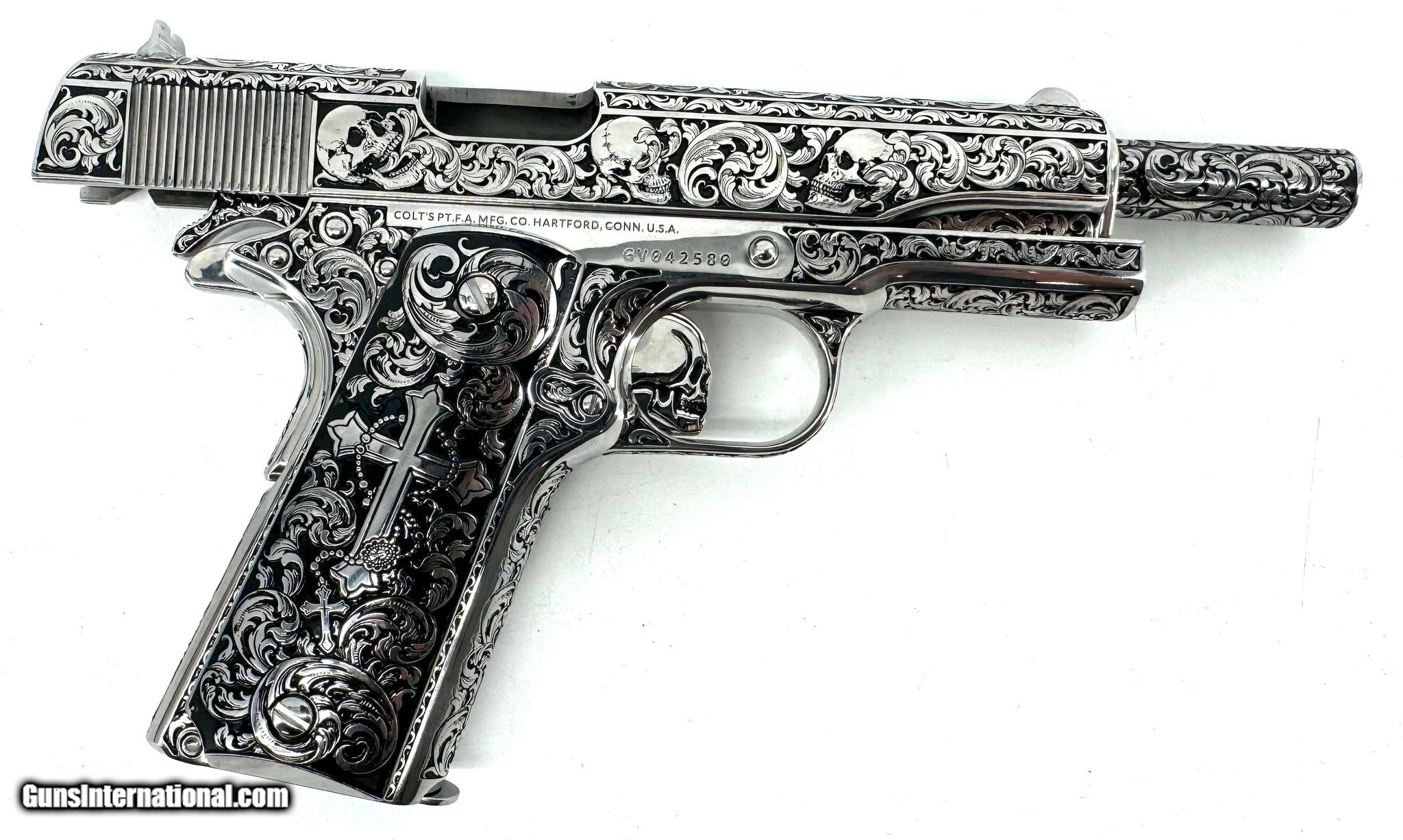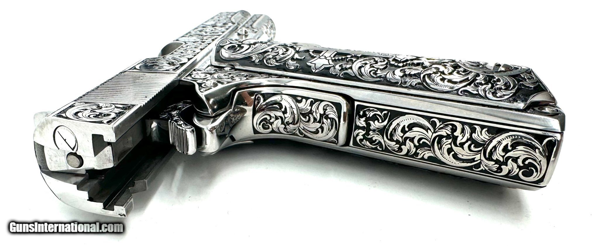 COLT 1911 GOVERNMENT 38 SUPER ENGRAVING W/GOLD BORDERED SLIDE CUSTOM SHOP .38 SUPER