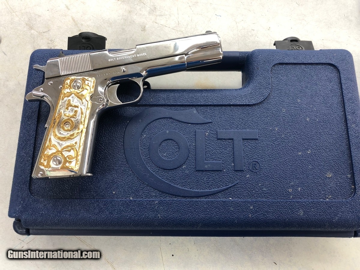 Description: Guns Listing ID: 616247 Chambered in super 38 AUTO HAS COLT GOVERNMENT BLUE CASE. Colt custom gold accent grips One magazine SOLD Manufacturer: COLT Model: 1911 GOVERNMENT 38 SUPER SERIES 70 Caliber Info: UNMARKED Condition: Used - Non-Certified Barrels: 5 BARREL Finish: CHROME |