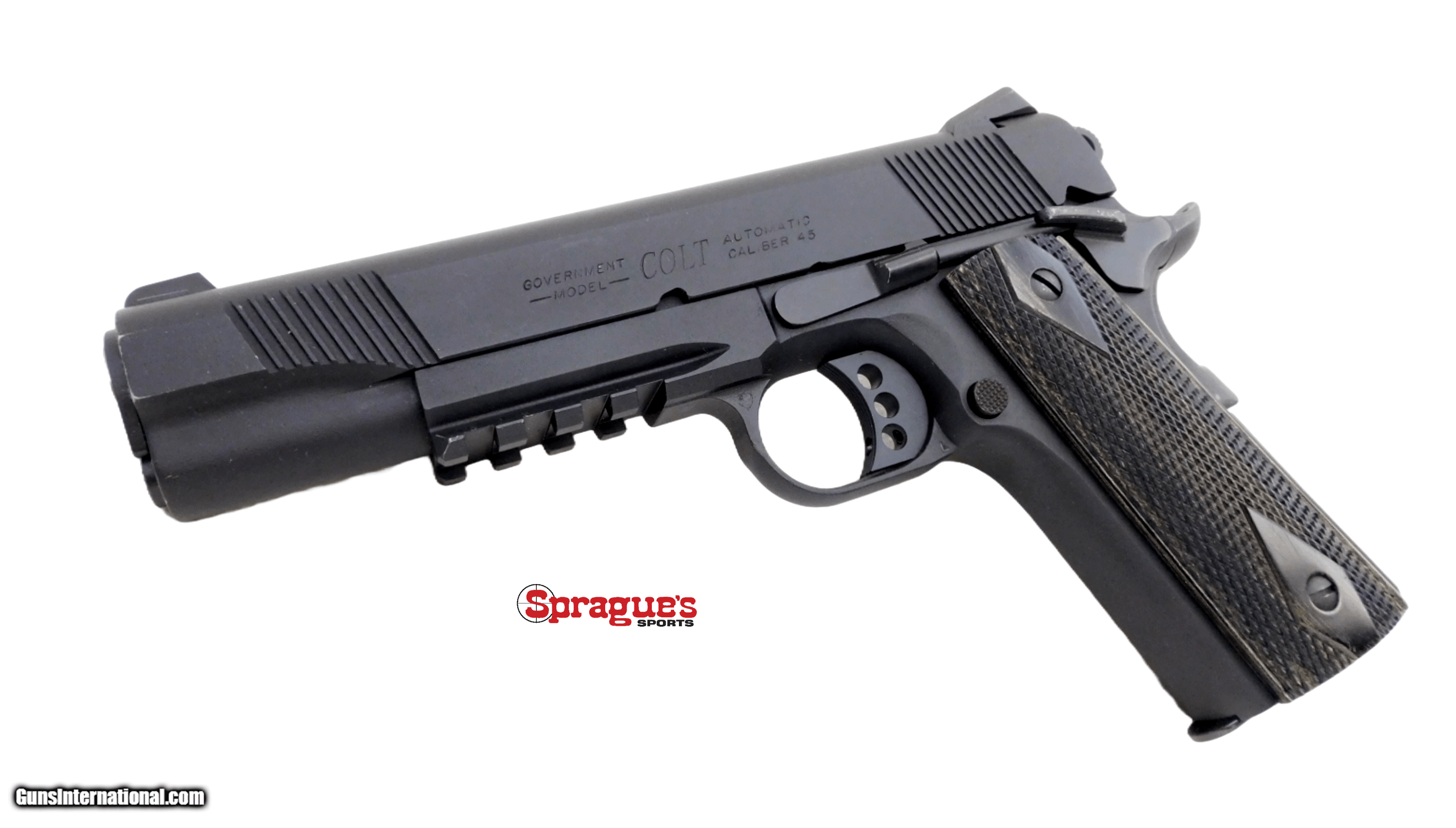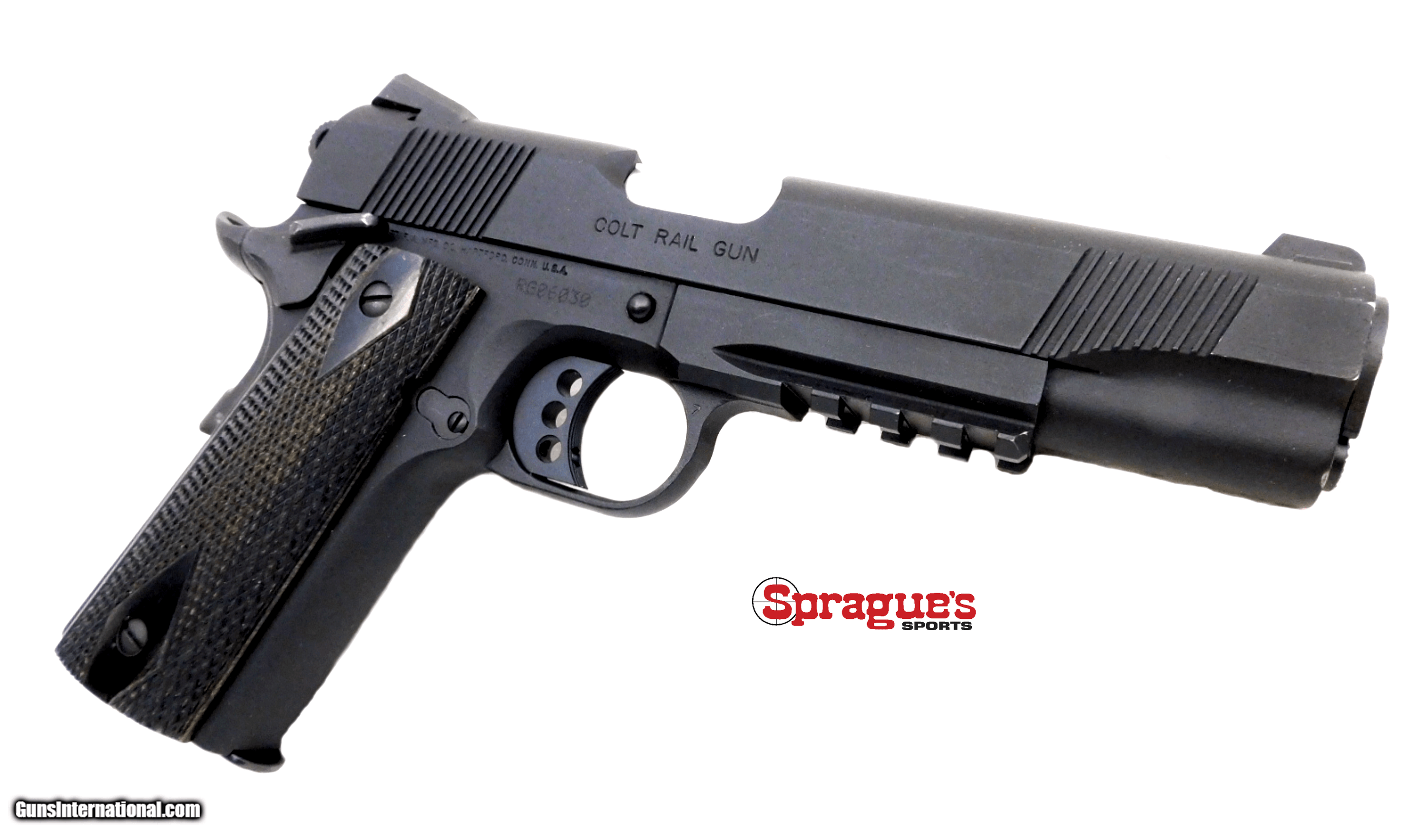 Description: Colt 1911 Government 45 ACP Rail Gun 5" National Match Barrel Manufacturer: Colt Model: 1911 Government Rail Gun Caliber:.45 ACP Manufactured:2011 Barrel:5" National Match, bright shiny bore, good rifling Rear Sight:Dovetail 2 dot square notch Front Sight:Dovetail one dot Optic:N/A Finish:Black matte, very light handling marks Action:Semi-automatic, mechanically solid, Unfired, fed by detachable magazines, ambidextrous thumb safety, grip safety, serrated main spring housing, skeletonized trigger - hammer, accessory rail under barrel, light handling marks with slight holster wear at muzzle Grips:Black/brown checkered grips, light handling marks Accessories: One magazine Condition:This is a stunning example of a used Colt 1911 Government Rail Gun. Serial Number:RG06030 Sprague's Number:151319 +++++++++++++++++++++++++++++++++++++++++++ Add 3% for Credit Card Shipping: $35.00 in the 48 contiguous United States +++++++++++++++++++++++++++++++++++++++++++ This handgun will be a GREAT addition to your future outings! In-house pictures are of the item(s) being sold and the item(s) that will be shipped to the buyer! If there are no boxes, documentation, accessories, etc. shown in the pictures or described in the description, they are not included. Any stock pictures will be labeled as such. PRIOR TO PURCHASE!!! We will do our best to answer all questions Monday through Saturday during business hours, but are CLOSED ON SUNDAY. PLEASE ALLOW 7-10 BUSINESS DAYS FOR PROCESSING PRIOR TO BEING SHIPPED ONCE PAYMENT AND FFL INFORMATION HAVE BEEN RECEIVED. Buyers are responsible to ensure that you have fully reviewed the listing before purchase. Buyers are responsible to know and ensure that they are in compliance with local, state, and federal regulations/laws and are of legal age for items purchased. We have not test fired any firearms unless specifically noted in the description. Have a GREAT SAFE HEALTHY day! SOLD |