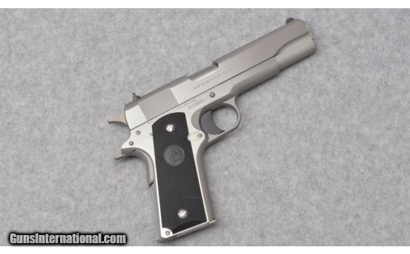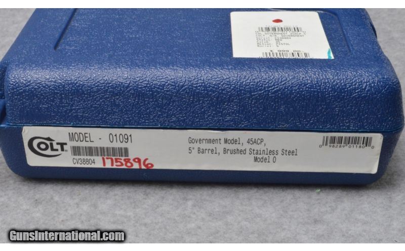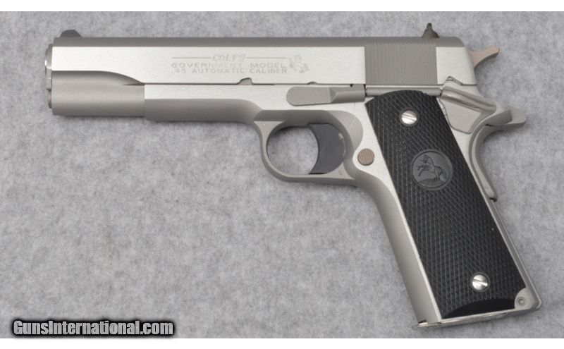 Description: This is an excellent condition Colt 1911 Government model in .45 ACP. The model number on the box is 01091. The stainless steel slide and frame show very little sign of use. The bore on this nice pistol is bright and clean. SOLD Caliber Info: .45 ACP Chambers: Semi-Auto 7+1. Metal Condition: Excellent. Wood Condition: The black rubber grips are in excellent condition. Bore Condition: Bright with defined rifling. Barrels: 5" stainless steel. Triggers: Black aluminum serrated trigger. Stock: Black rubber grips. Weight: 38 oz. Sights: 3 dot sights drift adjustable front and rear. Extras: With factory box, manual, 2 magazines. Item Location: West Chester, OH |