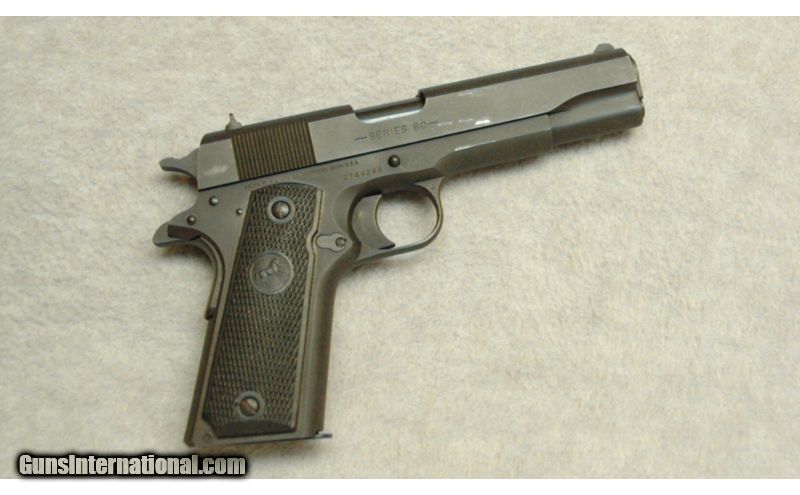 Description: Colt 1911 Government Model Pistol .45 Auto. Excellent condition, with one mag and box. Smooth, slick action, match barrel and a crisp trigger pull. A great choice for target shooting matches. SOLD Caliber Info: .45 Auto. Chambers: Semi auto. Metal Condition: Excellent, light finish wear, small nicks and scratches. Wood Condition: Grips are in excellent condition. Bore Condition: Bright. Barrels: 5" Kart match barrel. Triggers: Single action. Stock: Colt wood grips. Weight: 48 Ozs. Sights: Bomar rib with adjustable sight. Extras: With one mag and box. Item Location: La Vista, NE |