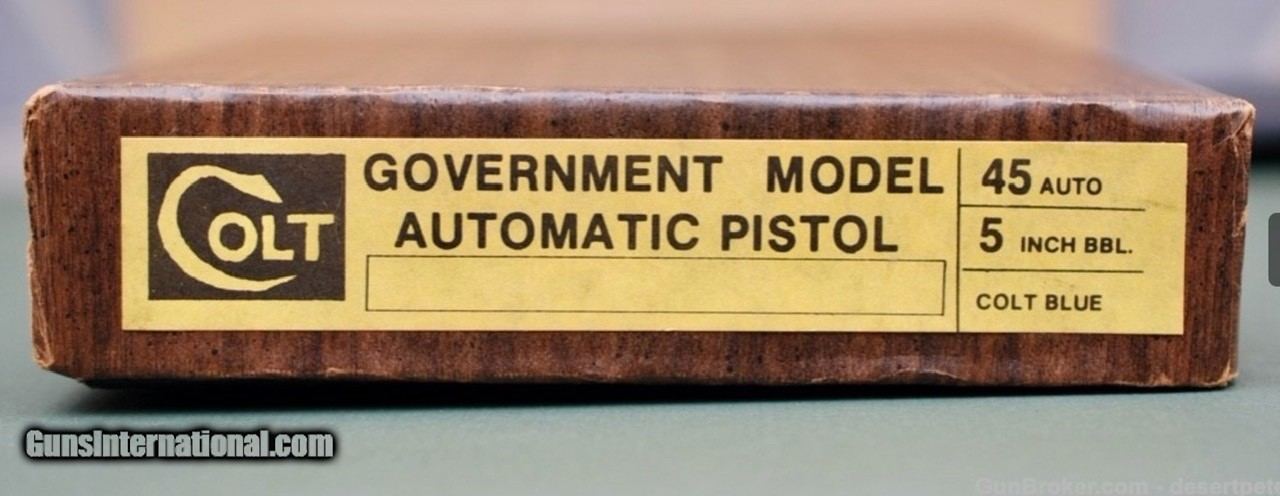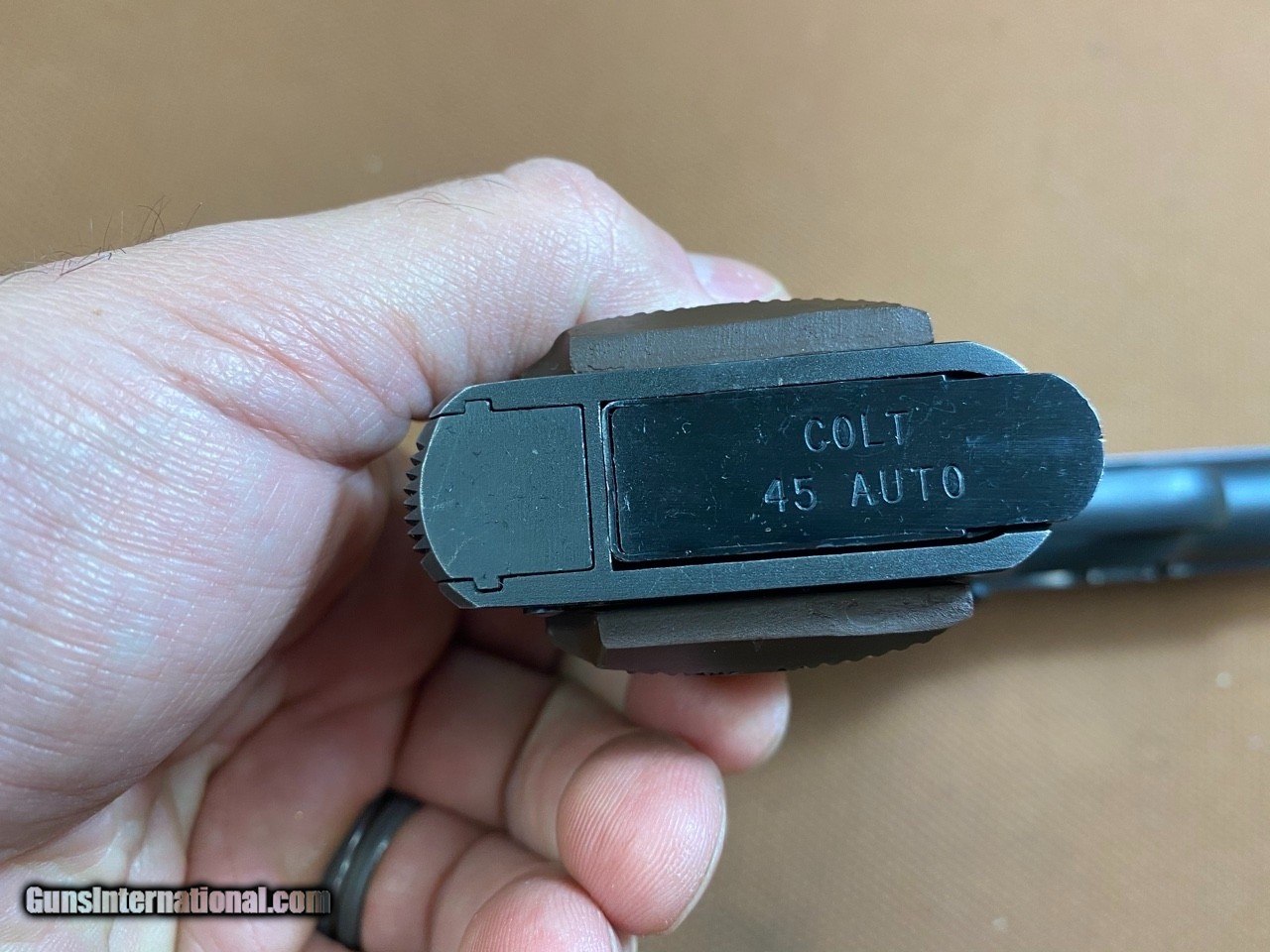 Description: Gorgeous Colt Government Model 1911 .45 auto, manufactured in 1960. This Colt is in excellent condition, it appears to have not been shot much at all! Probably a long time safe queen! It's from my personal collection, I have never shot it! It has original period correct plastic grips (very hard to find), it comes with box and paper work (the box is not serial numbered to gun). a true collectors grade Commercial model pre series 70. Don't miss out on it! Free Shipping with Insurance! SOLD Handgun Caliber: .45 ACP (.45 Auto) |
