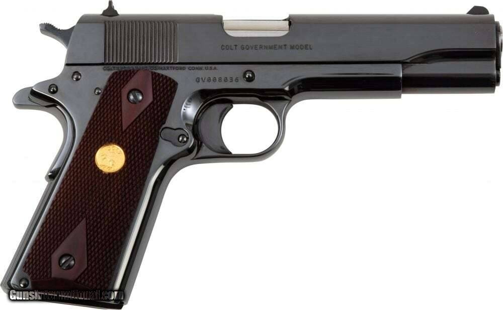 Description: Manufacturer: Colt's Manufacturing LLC Model: 1911 Government Classic - Royal Blue SKU: O1911C-RB Action: SAO Caliber: .45 ACP Capacity: 7 Rounds Barrel Length: 5" National Match Frame: Steel Finish: High Polish Royal Blue Overall Length: 8.5" Sights: Fixed Grips: Double Diamond Rosewood with an Inlaid Gold Rampant Gold Medallion Weight: 35 oz Overall Length: 42.5" All items are factory new in box unless otherwise stated. Based on the information available to us, the above specifications describe this item to the best of our knowledge. For further information, please contact or visit the manufacturer's . SOLD |
