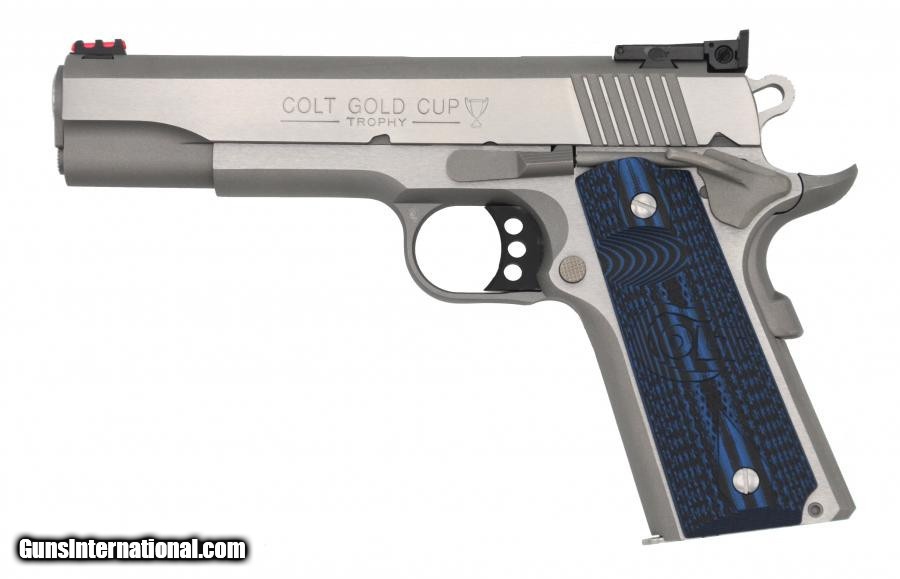 Description: Manufacturer: Colt's Manufacturing Co. Model: 1911 Government Gold Cup Lite SKU: O5070GCL Caliber: .45 ACP / Auto Capacity: (1) 8 Round Magazine Barrel Length: 5" Frame & Slide: Stainless Steel Finish: Brushed Stainless Overall Length: 8.5" Sights: Novak Red FO Front, Adjustable Bomar Style Rear Grips: G10 Checkered Blue with Scallop Weight: 38 oz All items are factory new in box unless otherwise stated. Based on the information available to us, the above specifications describe this item to the best of our knowledge. For further information, please contact or visit the manufacturer's . SOLD |