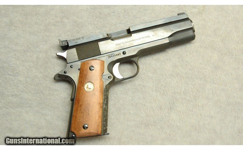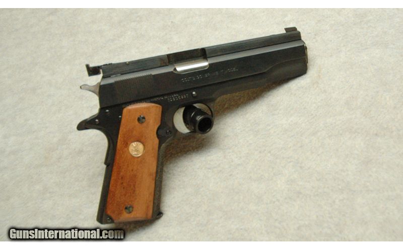 Description: Colt Model1911 Government ModelPistol .45 ACP. Excellent condition with one mag and box. Smooth action, Kart match barrel, crisp trigger pull, Bomar target rib with adjustable sights. A great choice for target shooting matches .45 ACP SOLD Chambers: Semi-auto. Metal Condition: "Excellent, light finish wear, few small nicks and scratches. Wood Condition: Grips are in excellent condition. Barrels: 5" Kart match barrel. Triggers: Single action. Sights: Bomar rib with adjustable sight. Item Location: La Vista, NE |