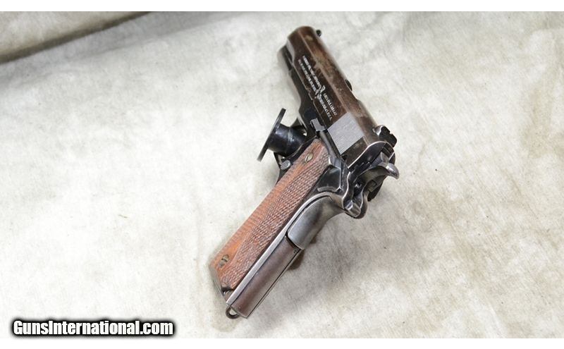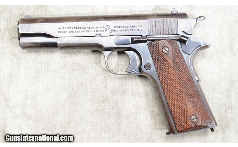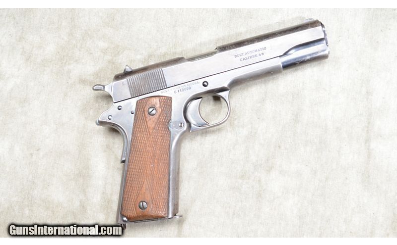 Description: Nice collectible Colt 1911 with more than 50% of the blue left. Manufactured in 1919 based upon the S/N C112xxx. .45 ACP SOLD Curio/Relic: Yes Chambers: 8 ROUNDS Metal Condition: Good. There is wear on all the high points. Wood Condition: Good. Checkering is a bit flattened and there a couple of chips along the lower edge. Bore Condition: Shiny and bright with sharp rifling. Barrels: 5-INCH Triggers: Factory single action only. Butt Pad: Checkered walnut. Weight: 38 Sights: Military post and notch. Item Location: Rogers |