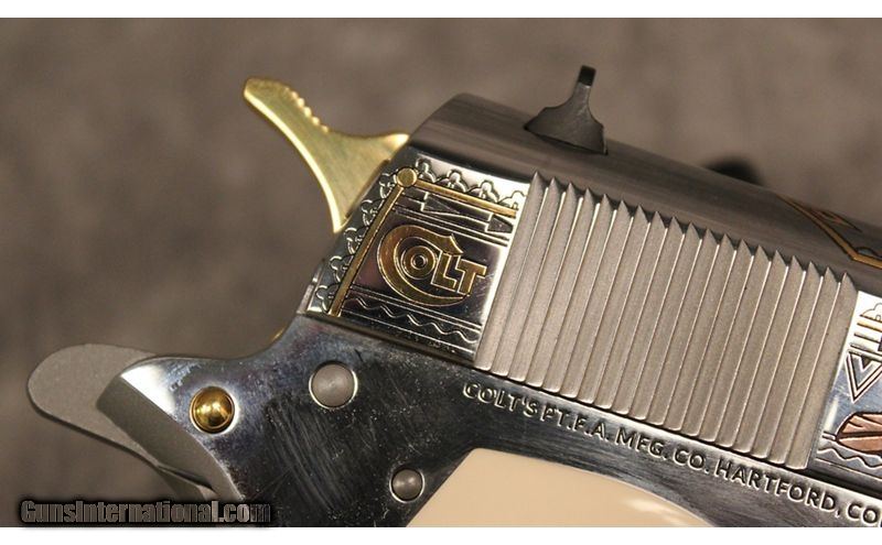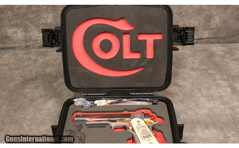 Description: This limited edition 1911 features ornate Bandera themed engraving throughout, with gold and bronze inlay and stylized Mexican flag grips. One of only 500, ships with a collector's Plano style case, lock, and manual. .38 Super SOLD Metal Condition: New in box Bore Condition: New in box Barrels: 5 Weight: 2LBS Item Location: Broken Arrow, OK |