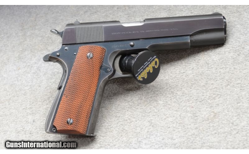 Description: SOLD Caliber Info: .45 ACP Metal Condition: Very good. Some bluing wear on the high points and a few shallow scratches. Wood Condition: Very good. The checkering is good, no significant cuts or chips. Bore Condition: Bright and shiny. Barrels: 5 Inch Stock: Checkered walnut Weight: 2-1/2 lb. Sights: Post and notch Item Location: Rogers, MN, MN |