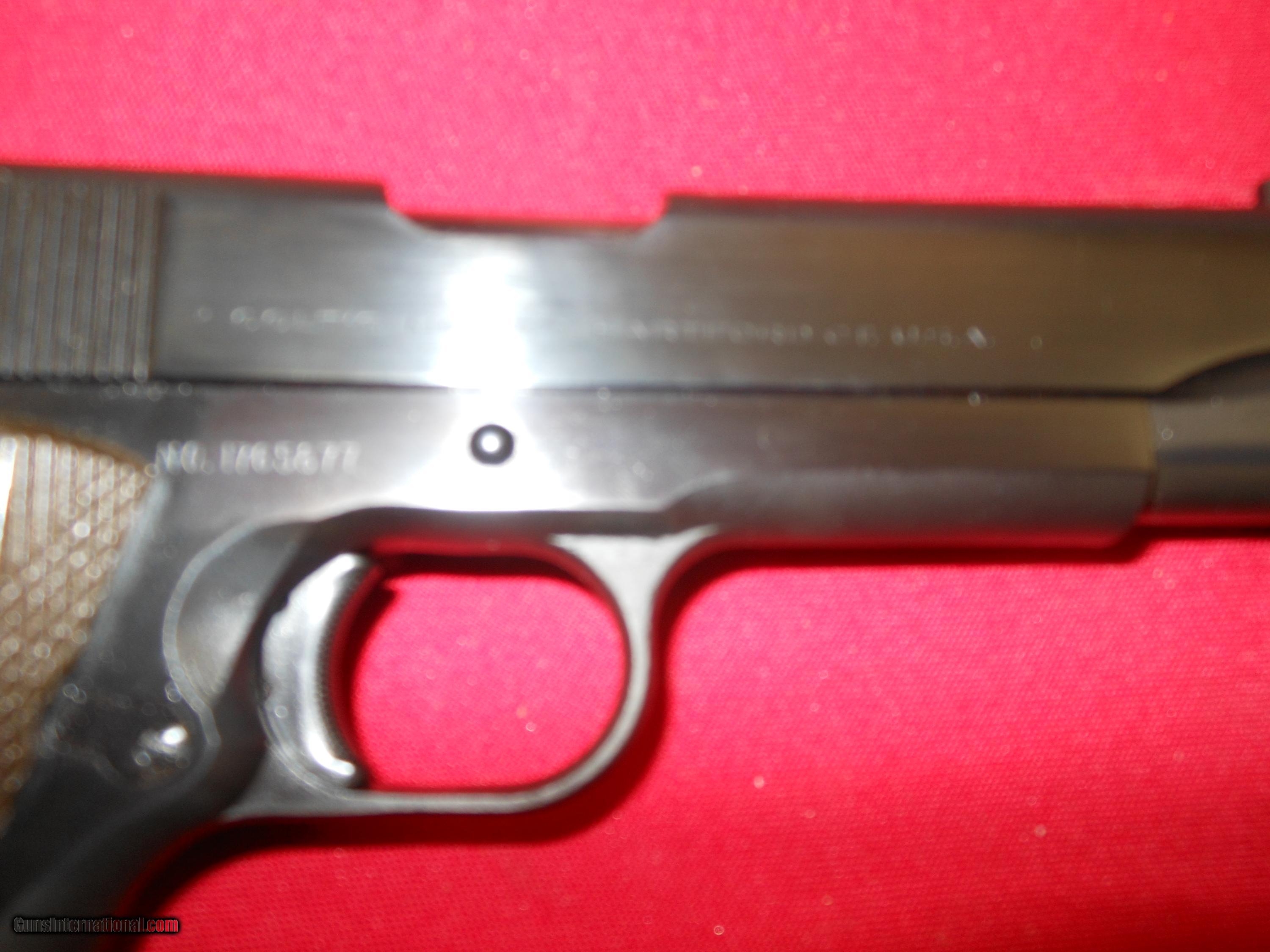Description: This 1911 is old, but someone put it away and never used it, as the wood grips are from the older colts, the serial # is 1765877, strange, i might think was this a gov. model that was supposed to go to the military in world war 2 ? the barrel and entire gun is new, add for postage, wrapping, and ins. FLASH : acording to colt records this 1911 was built in 1943 and given to the U.S.ARMY.colt records, 8-30 , 2017 deal pending, full price. SOLD Curio/Relic: Yes |