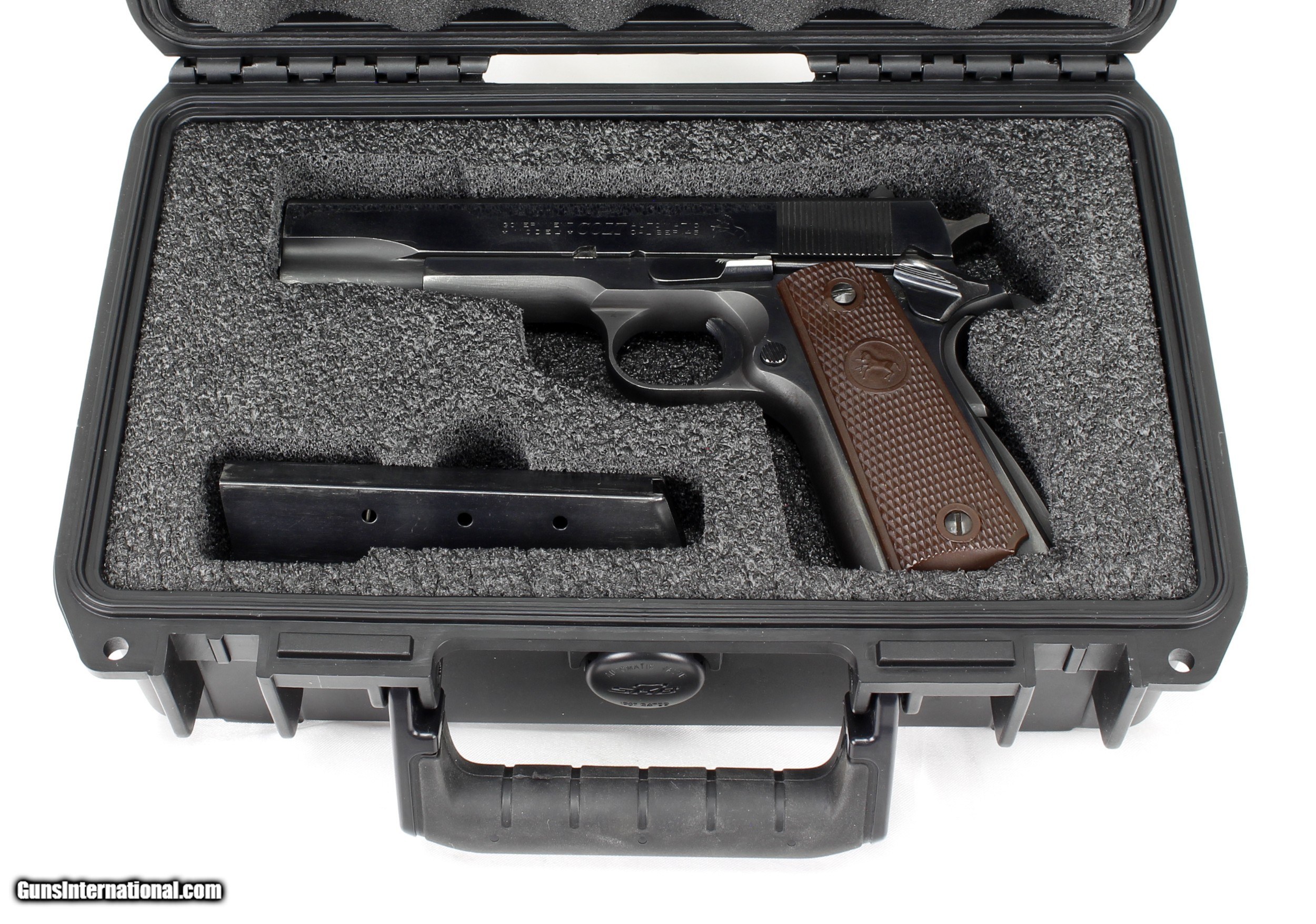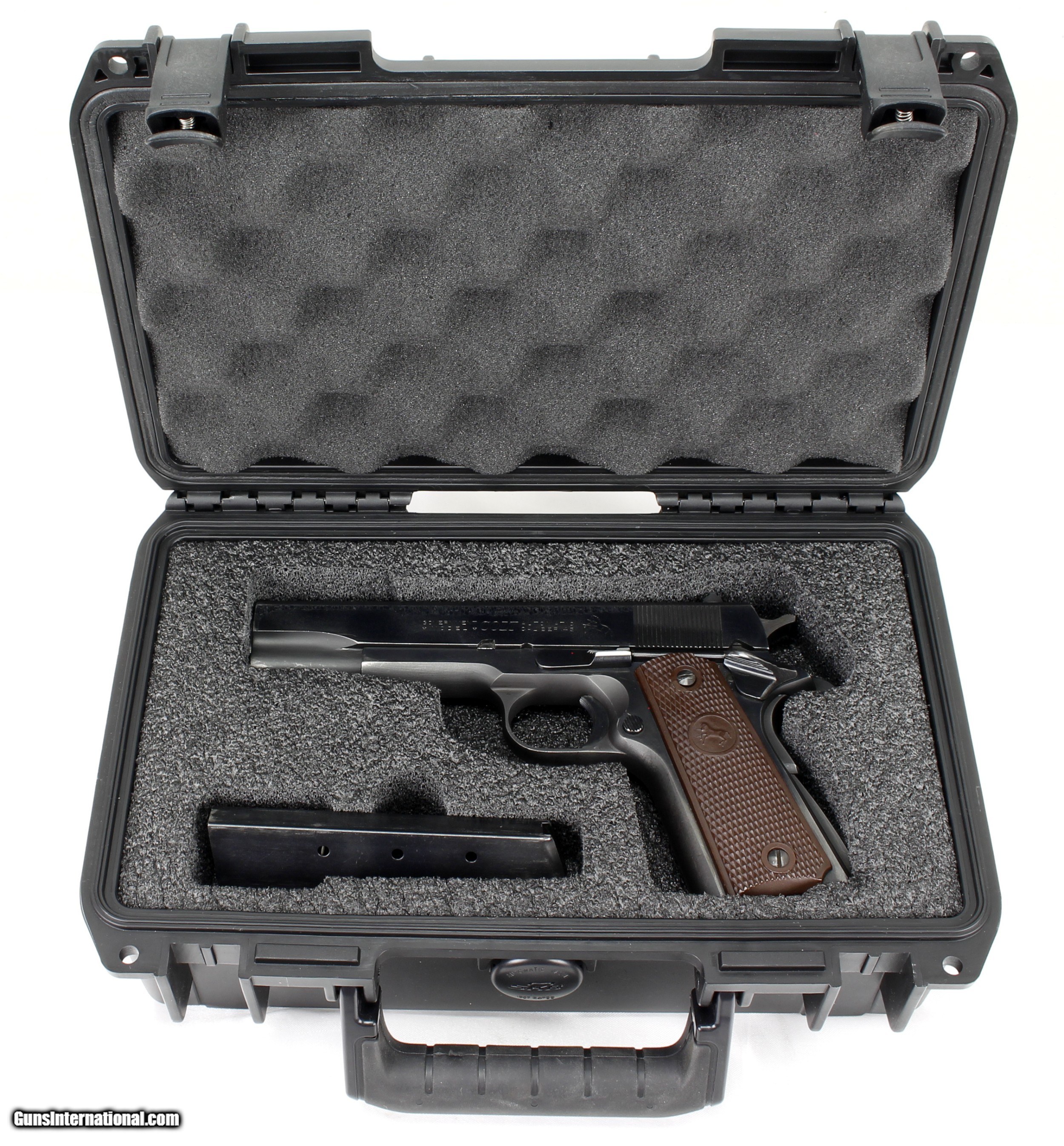 Description: Colt 1911 Government Pre-Model 70 Semi-Auto Pistol in .45ACP. SN #293252-C. Mfg. in 1963. 5" Barrel with an EXCELLENT Bright Bore with STRONG RIFLING. The Blued Metal and Original Polymer Grips are in VERY GOOD condition for their age with just some slight wear on the slide. Comes with 2 - 7 round magazines. Includes a Nice Foam Lined SKB Storage / Carry Case. Weight: 2 lbs. 4 oz. Trigger Pull: 6 lbs. More photos available upon request. Ships to Lower 48 W/ Insurance $45.00. SOLD Curio/Relic: Yes Manufacturer: Colt Model: 1911 Government Pre-Model 70 Serial Number: 293252-C Barrel Length: 5 Condition: VG for Age Metal Condition: VG for Age Bore Condition: Excellent Finish: Blue Weight: 2 lbs. 4 oz. Manufacture Date: 1963 |