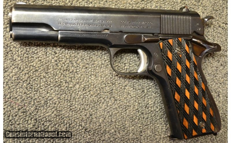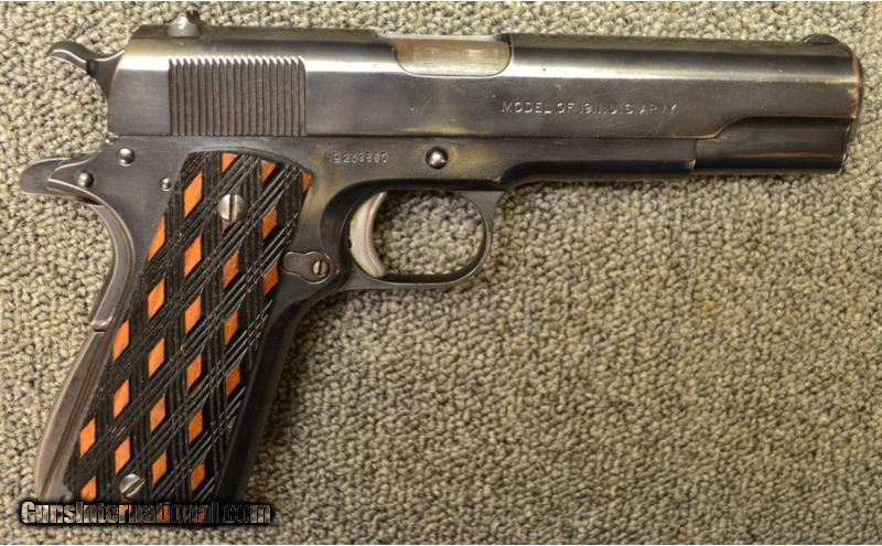 Description: Colt 1911 in .45 ACP SOLD Manufacturer: S/N 239660 Caliber Info: .45 ACP Metal Condition: Good - Minor Ware and Loss of Bluing Wood Condition: Very Good Bore Condition: Very Good Barrels: 5 Inches Triggers: Single Action Stock: Checkered Grips Sights: Factory Item Location: Grandville, MI |