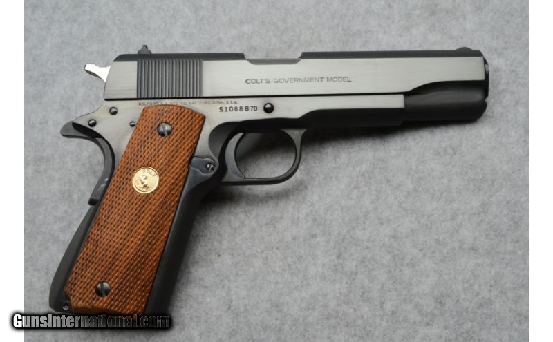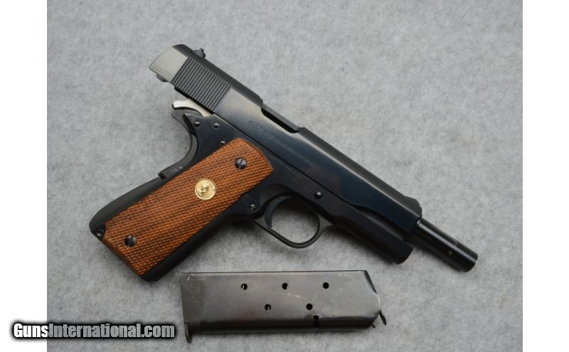 Description: SOLD Caliber Info: .45 Auto. Chambers: 8 Rounds. Metal Condition: Excellent with some small scratches by slide lock and grip safety. Wood Condition: Excellent. Bore Condition: Excellent Bright. Barrels: 5 Inches. Triggers: Single. Stock: Checkered walnut grips with gold Colt medallions. Weight: 2 Pounds 9 Ounces. Sights: Fixed. Item Location: Noblesville, IN |