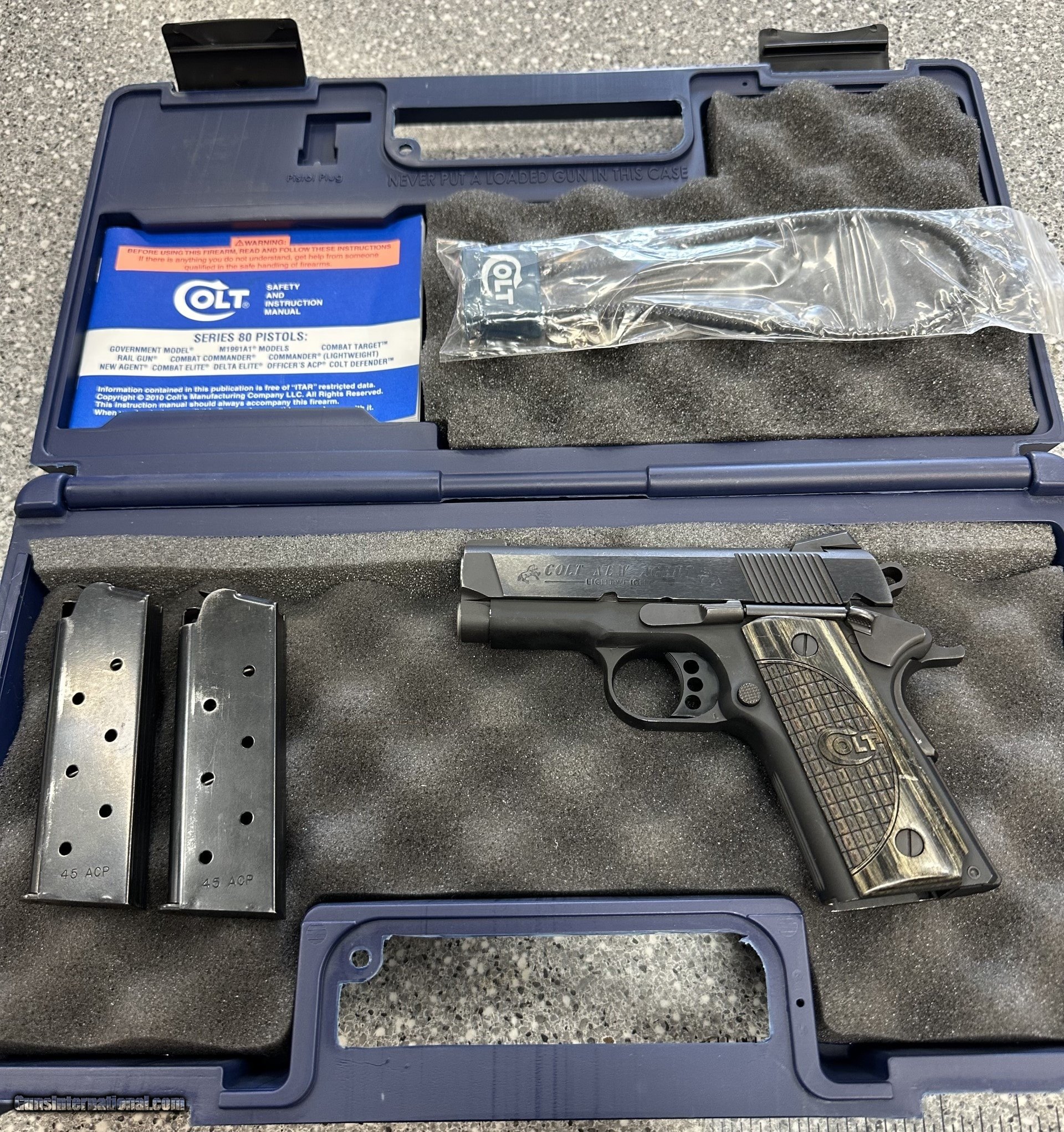 Description: Guns Listing ID: 900824 Colt New Agent Lightweight chambered in 45ACP with 3 inch barrel, matte-blue aluminum frame, blued-steel slide, Trijicon front iron sight & colt-scaled hand grips, comes with 2 magazines and original case. Overall condition 7/10 normal wear (A11009063) Posted by JS SOLD Manufacturer: COLT Model: 1911 NEW AGENT LIGHTWEIGHT Caliber Info: .45 ACP Condition: Used - Non-Certified Barrels: 3 BARREL Finish: BLUE AND BLACK |