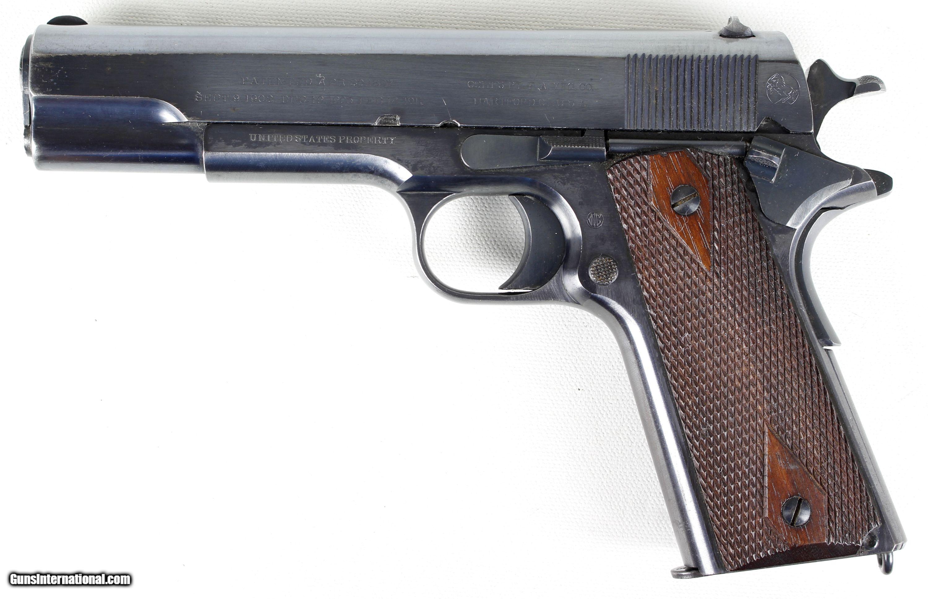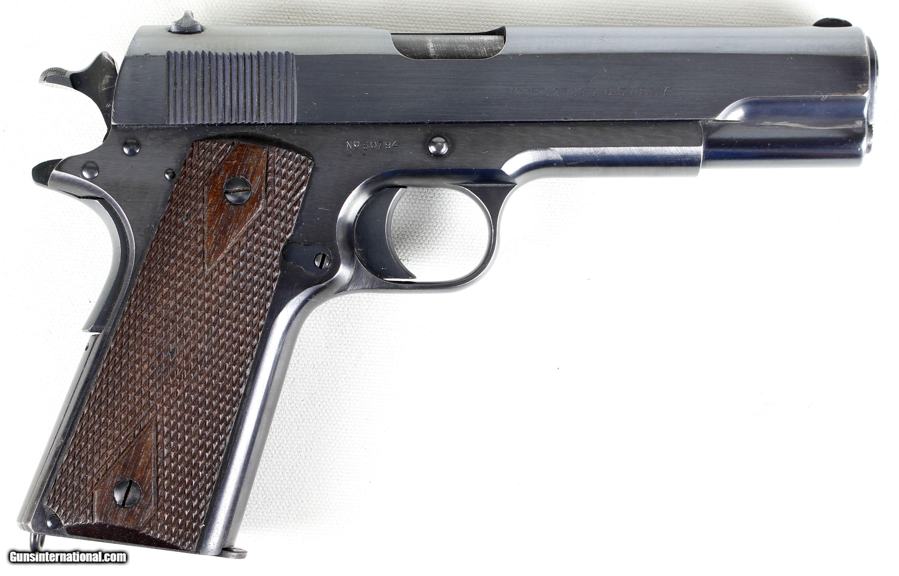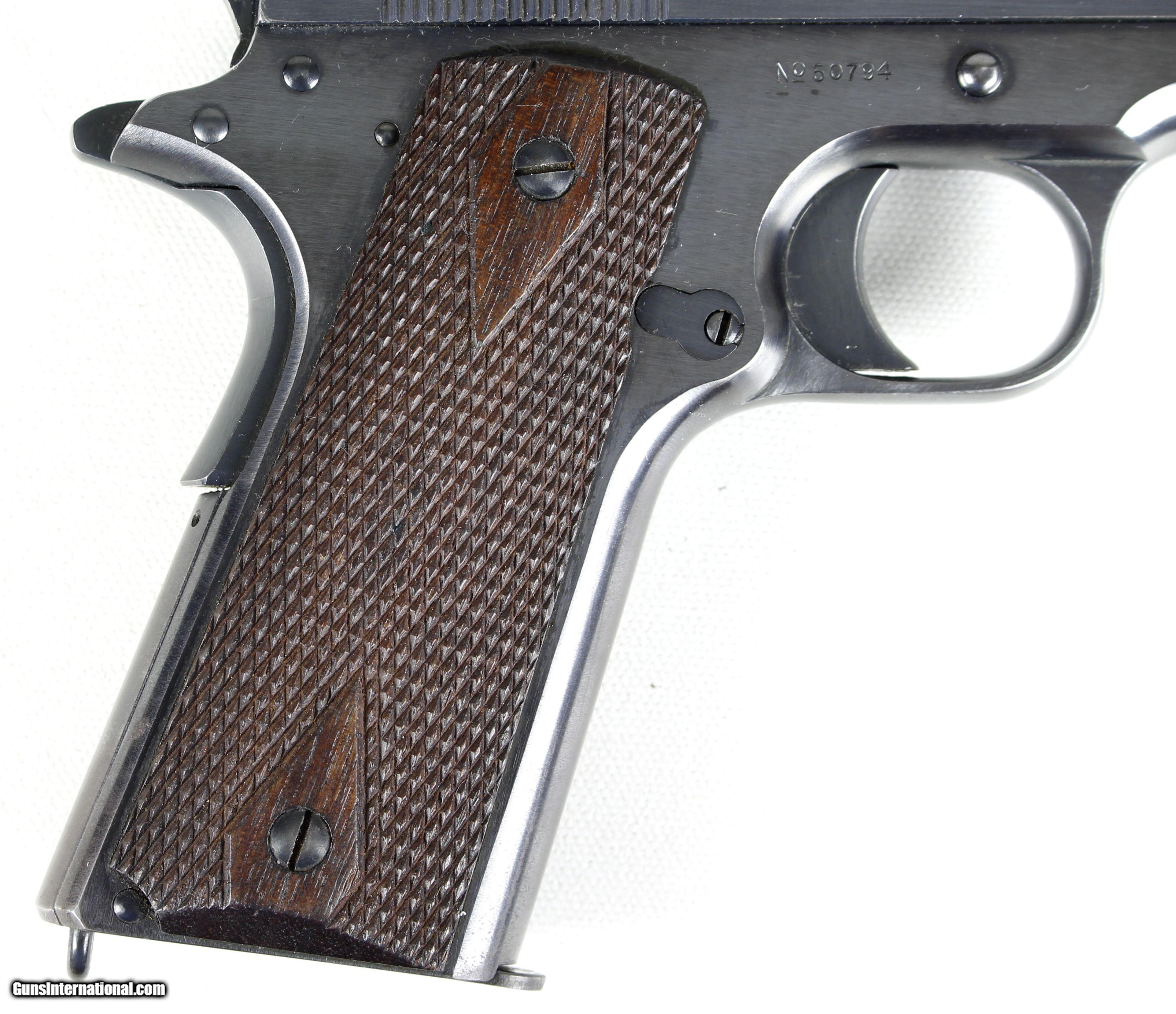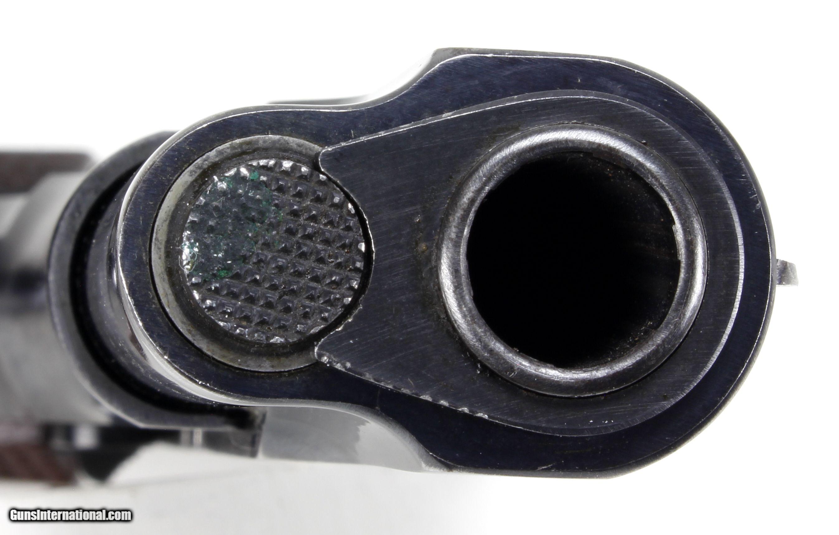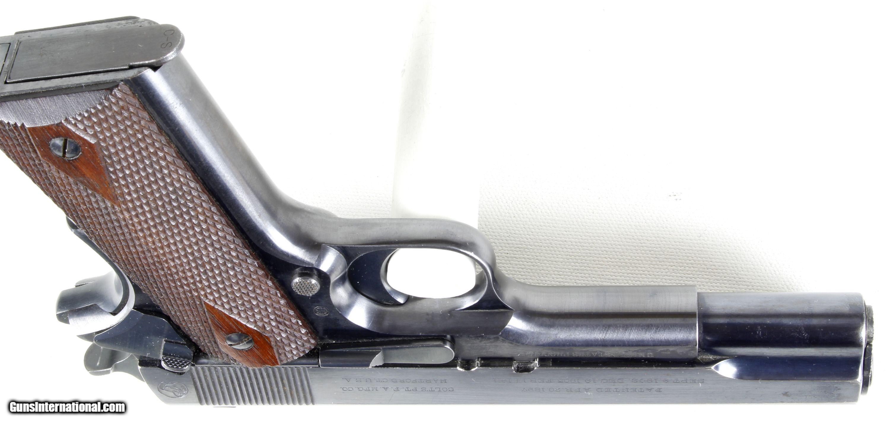 Description: COLT, Model of 1911, 45ACP, UNITED STATES PROPERTY on LEFT SIDE OF FRAME, MODEL OF 1911, U.S. ARMY on Right Side of Slide. Royal Blue. This gun is Original in every Detail, except Mag. Magazine is a WW2-era mag mfr'd by Scovill. Grips Appear Original. Excellent Bore, Mechanically Excellent. This is the Finest Condition Early 1911 we have seen. SN#50794, MFG: 1913. There is some question as to whether the slide on this pistol has been replaced with an earlier slide due to the circled rampant colt on the left rear. We are unable to definitively determine if this is the case. The water is muddied because Colt had a tendency to never throw anything away and always ran a percentage of over-run parts to take care of any rejections. It is known that there were a number of Navy contract Colts with circled rampant colts in 1913 in the serial number range of 38XXX-43XXX. Because of this we can't disprove this slide could have come from Colt this way either. The finish on the slide is original and matches the condition of the rest of the gun. Ships to Lower 48, W/Insurance: $65.00 SOLD Manufacturer: COLT Model: 1911 Serial Number: 50794 Caliber Info: 45ACP Bore: EXCELLENT Condition: EXCELLENT Metal Condition: EXCELLENT |