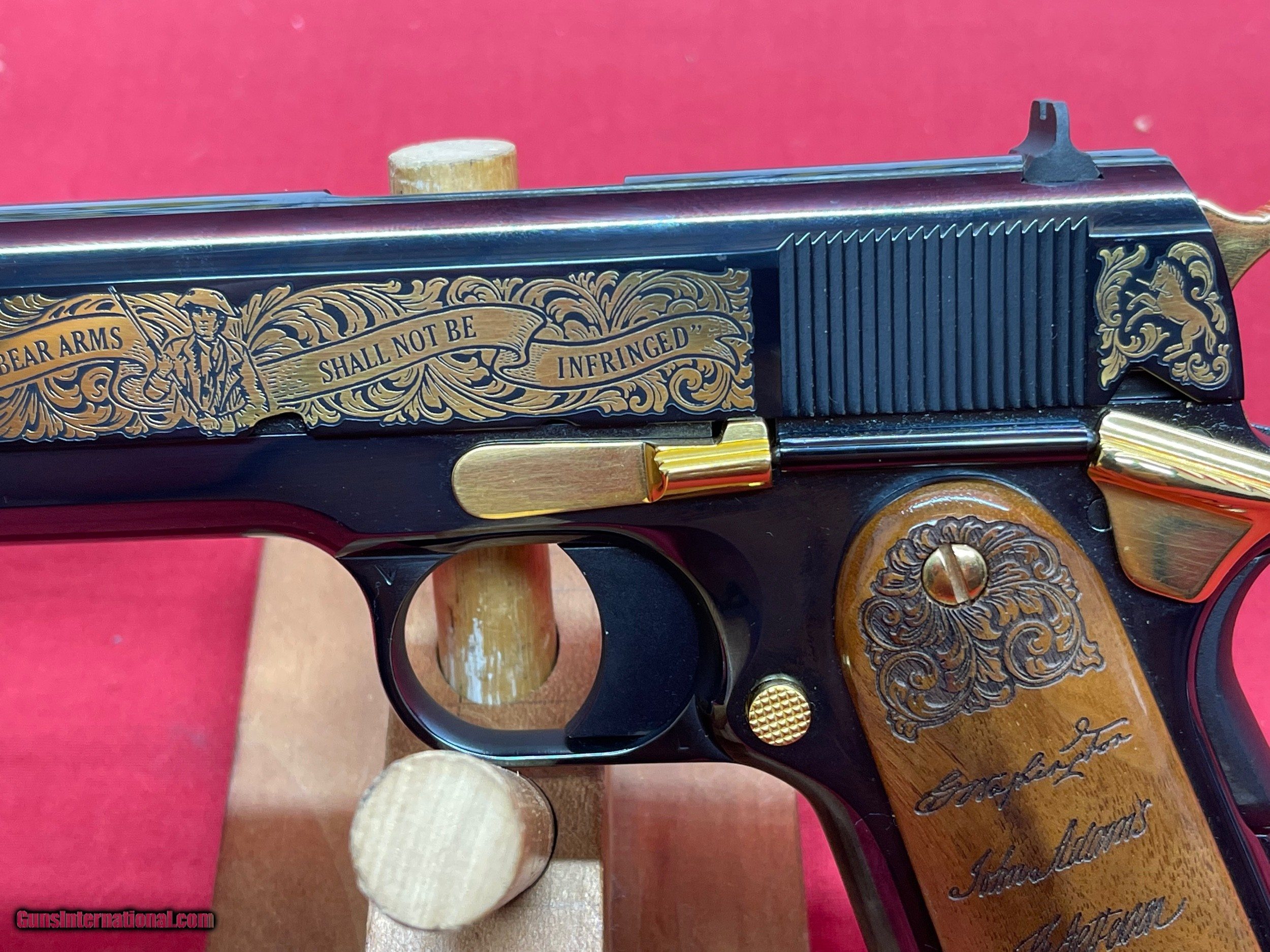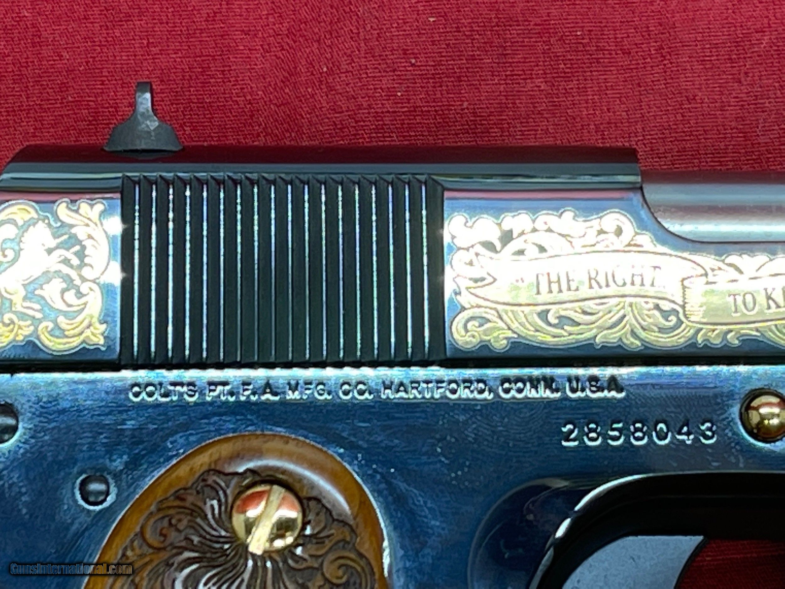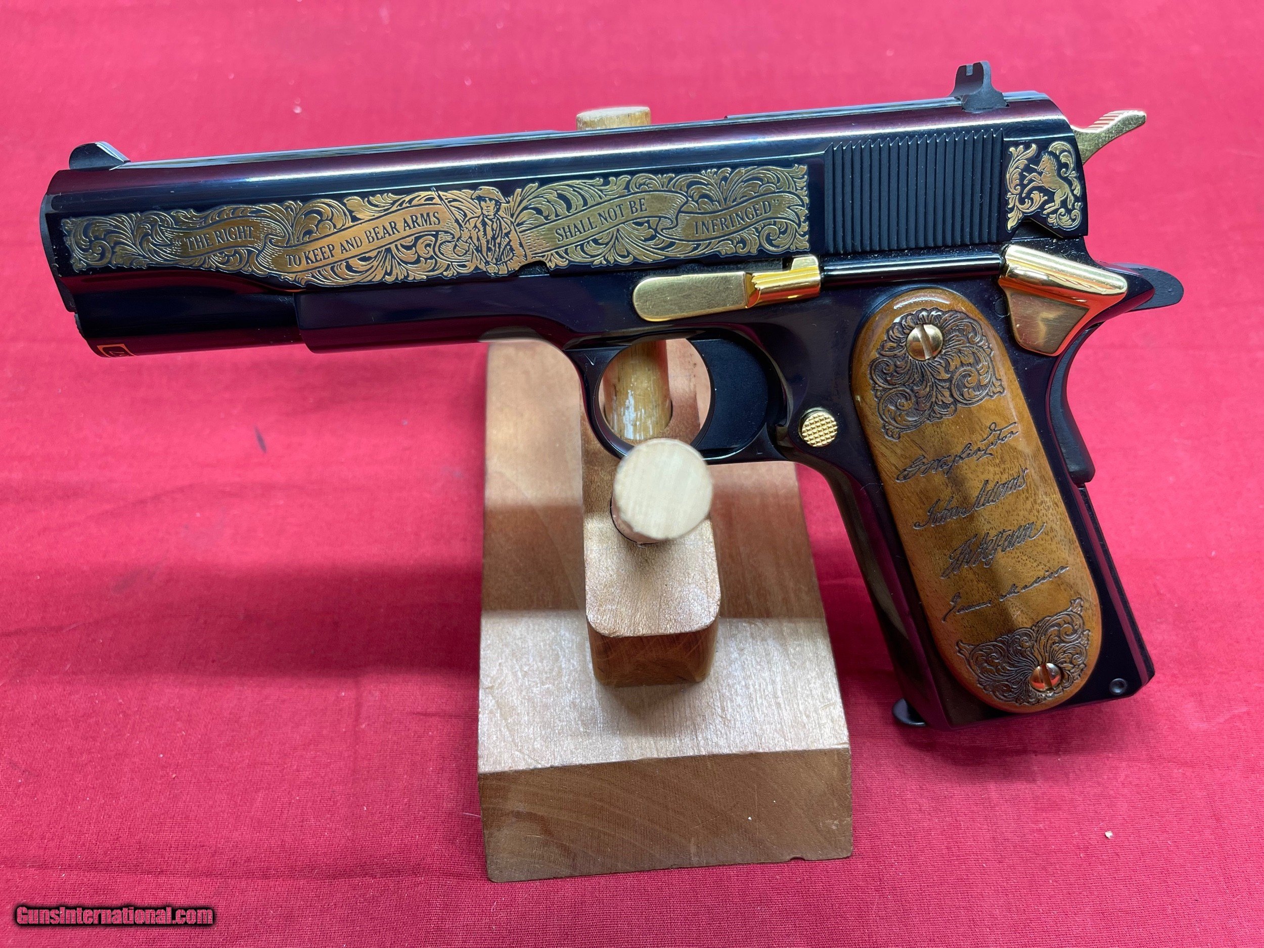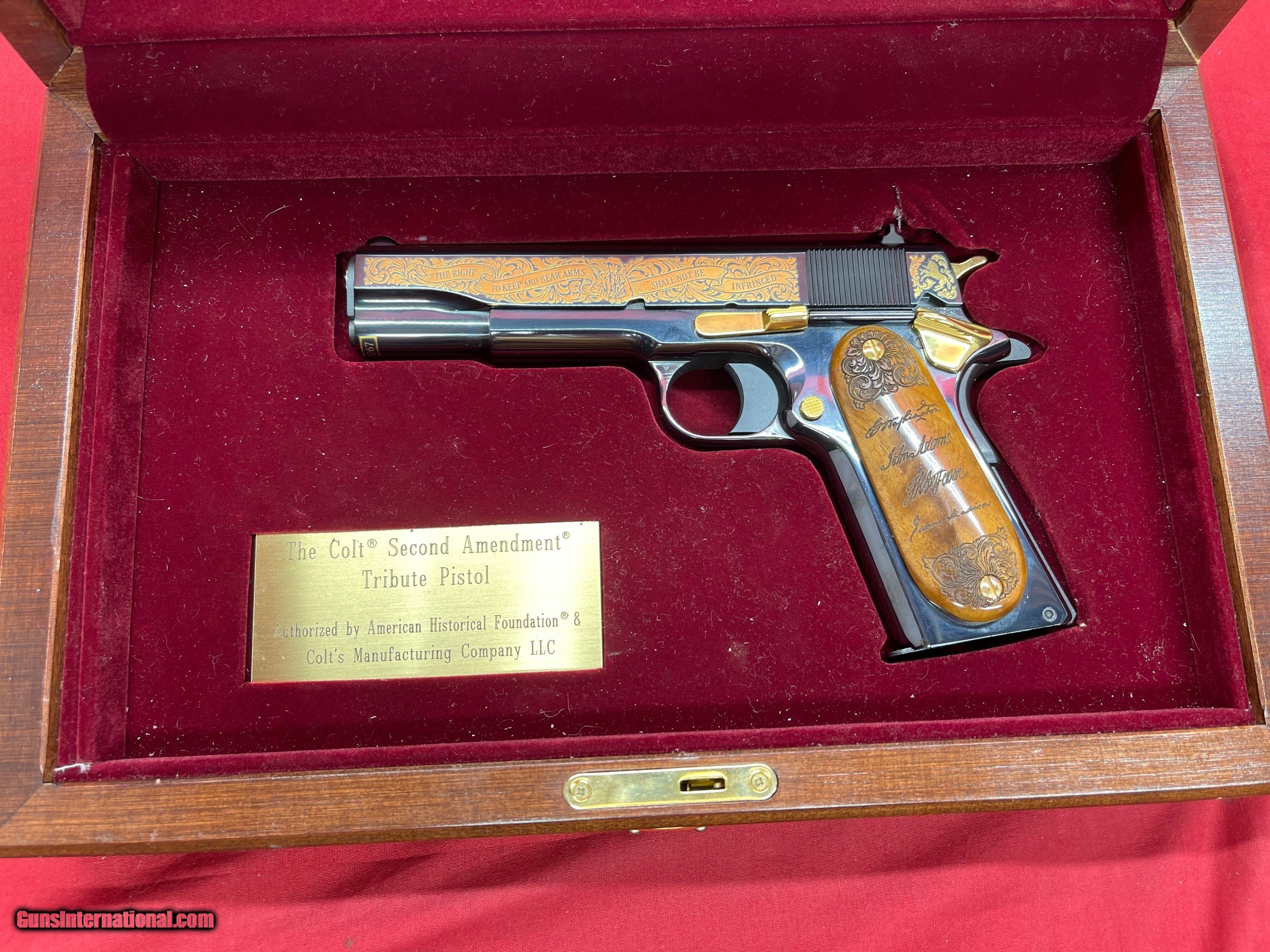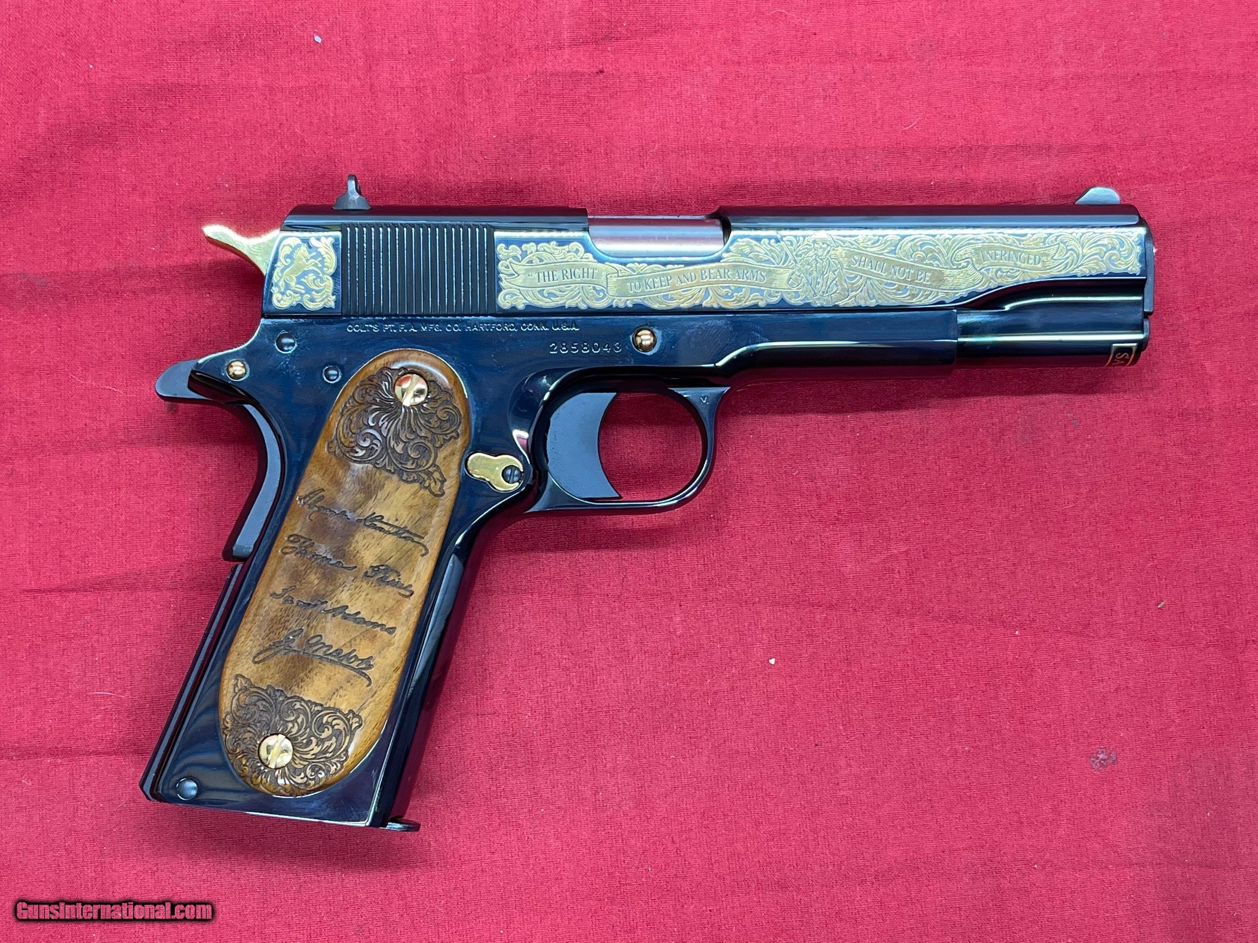Description: Another great item from Gainesville Pawn! Up for sale is a *Please be aware that all items are sold “AS IS”. Up for sale is a Colt 1911 Commemorative #SA 0067. New unfired if factory wood display case with glass top. Ask questions BEFORE buying. Feel free to call us at our store (352) 240-6452 or email us at Gainesvillepawngmail with ANY questions. We do not accept trades or offers through through Guns International We only entertain trades and offers through our store. $35 shipping and handling. Insurance extra. We only accept USPS money orders and major credit cards for payment. 3% convenience fee for credit cards. WE collect Florida state sales tax for in state sales. Please be aware that this item is for sale in our store as well as the occasional gun show so it may be sold there at any time. We will not ship the item until you have your dealer/receiving store email us a signed copy of their FFL to gainesvillepawngmail SOLD Handgun Caliber: .45 ACP (.45 Auto) Manufacturer: Colt Model: 1911 Second Amendment Serial Number: 2858043 Barrel Length: 5 in Condition: like new Metal Condition: like new Wood Condition: like new Bore Condition: like new |