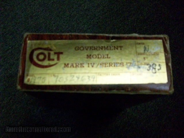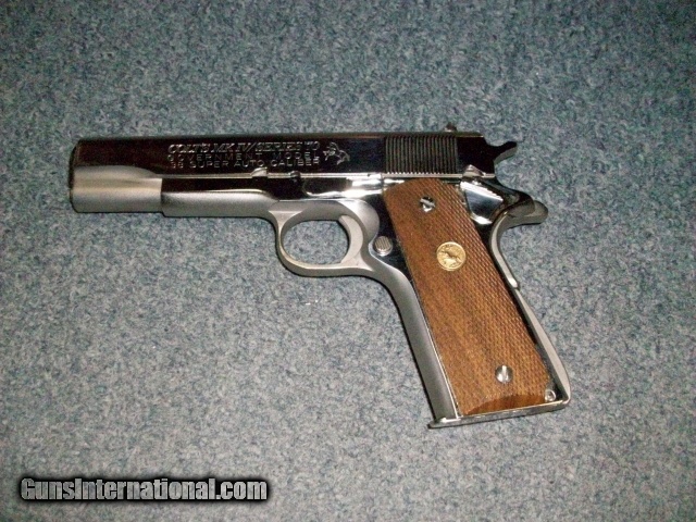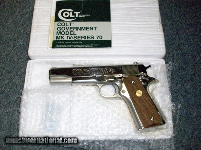 Description: This SERIES 70. Colt 1911 Mk. lV Government Model is a bright Nickel pistol in .38 SUPER Cal. (Mfg. 1977) Comes in box with book. Condition 99.9%. $2800.00. rmgrigolettoyahoo 732 280 8750. SOLD |