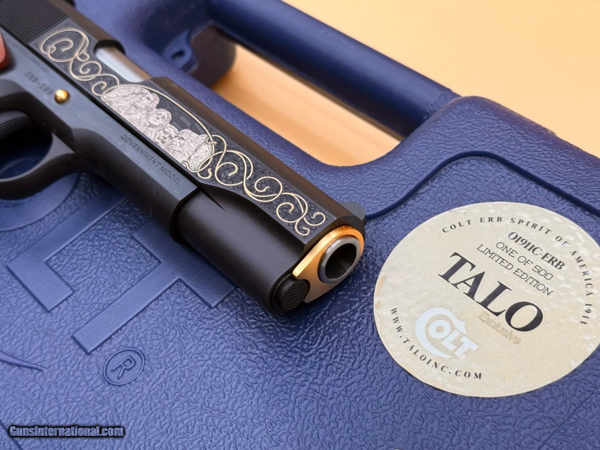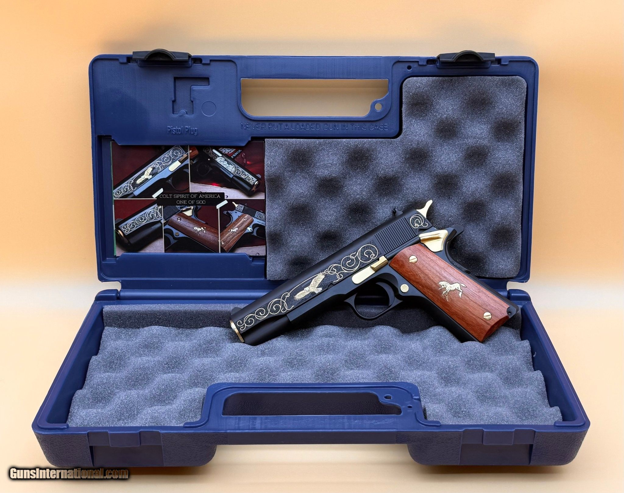 Description: Guns Listing ID: 584718 ***BRAND NEW*** Brand new Colt 1911 TALO Spirit of America. Number 199 of only 500!!! This TALO limited edition pistol is engraved in fine detail to celebrate the Spirit of America through symbols that reflect the strength and glory of our great nation. Blued finish, limited edition engraving, 24kt gold and .999 silver accents, and cherry wood grips. Manufacturer: COLT Model: 1911 Spirit of America Caliber Info: .45 ACP Condition: Used - Non-Certified Barrels: 5" BARREL Action: SEMI AUTOMATIC Finish: blued Price: $2,599.99 Contact Seller |