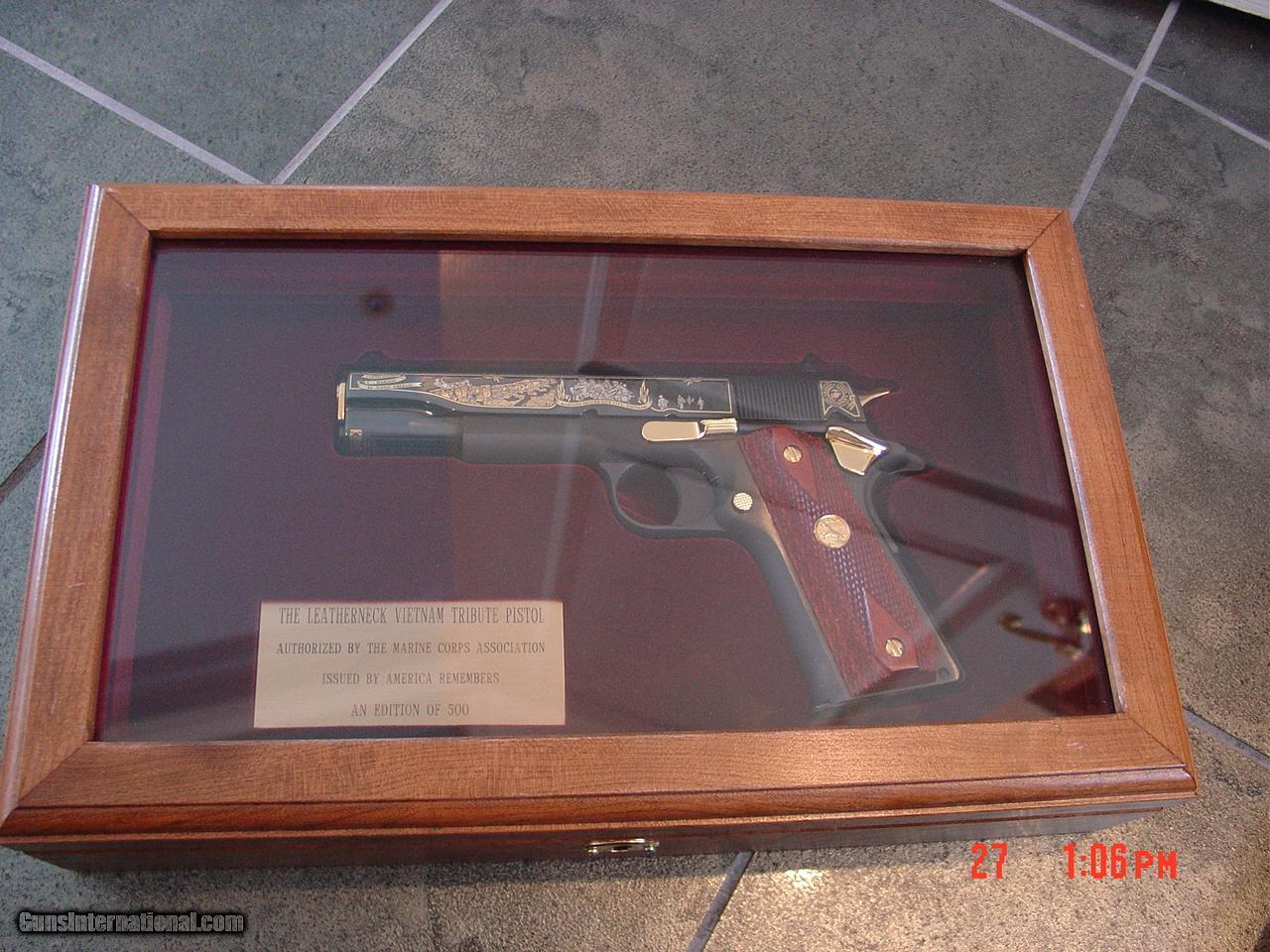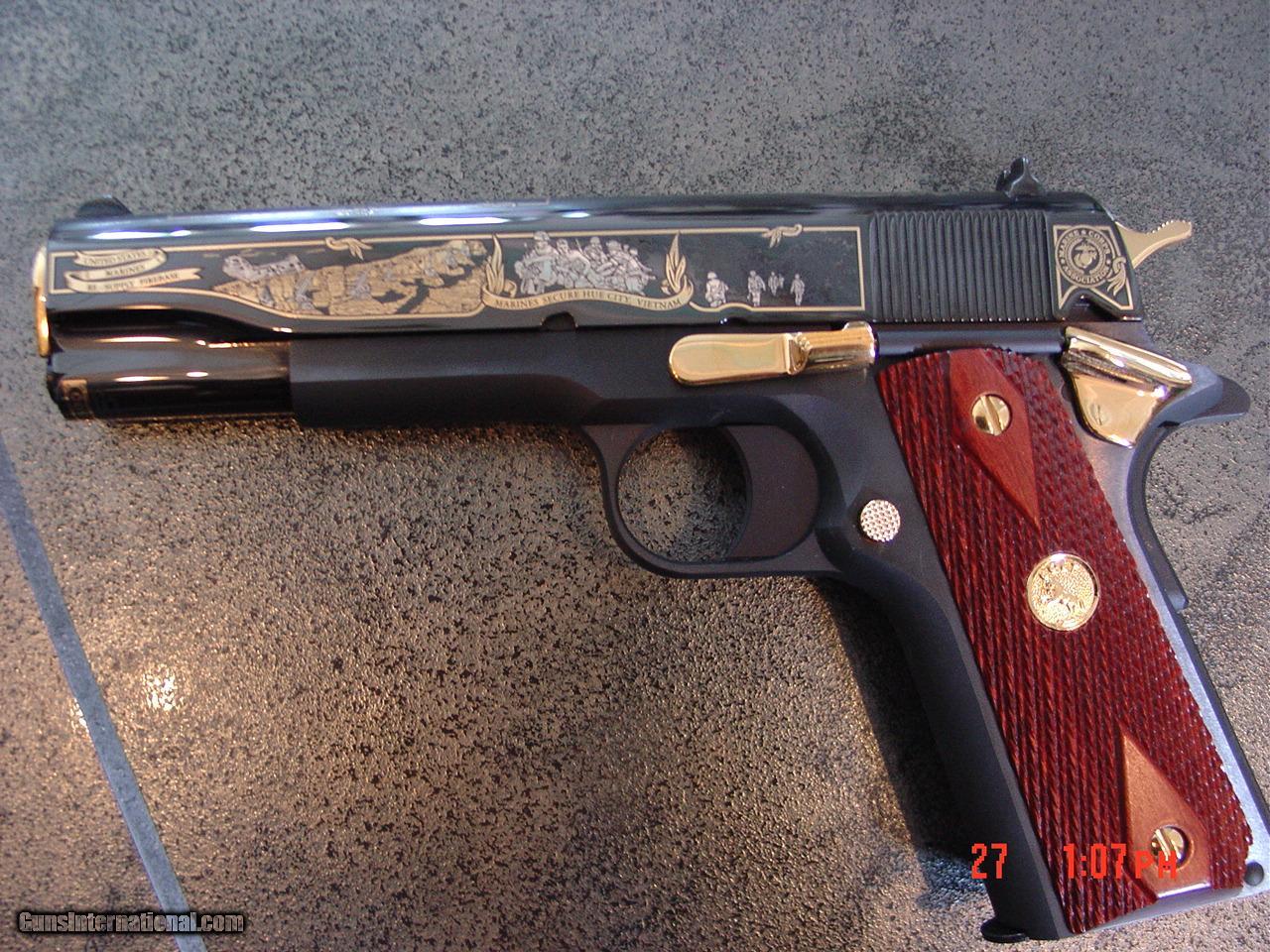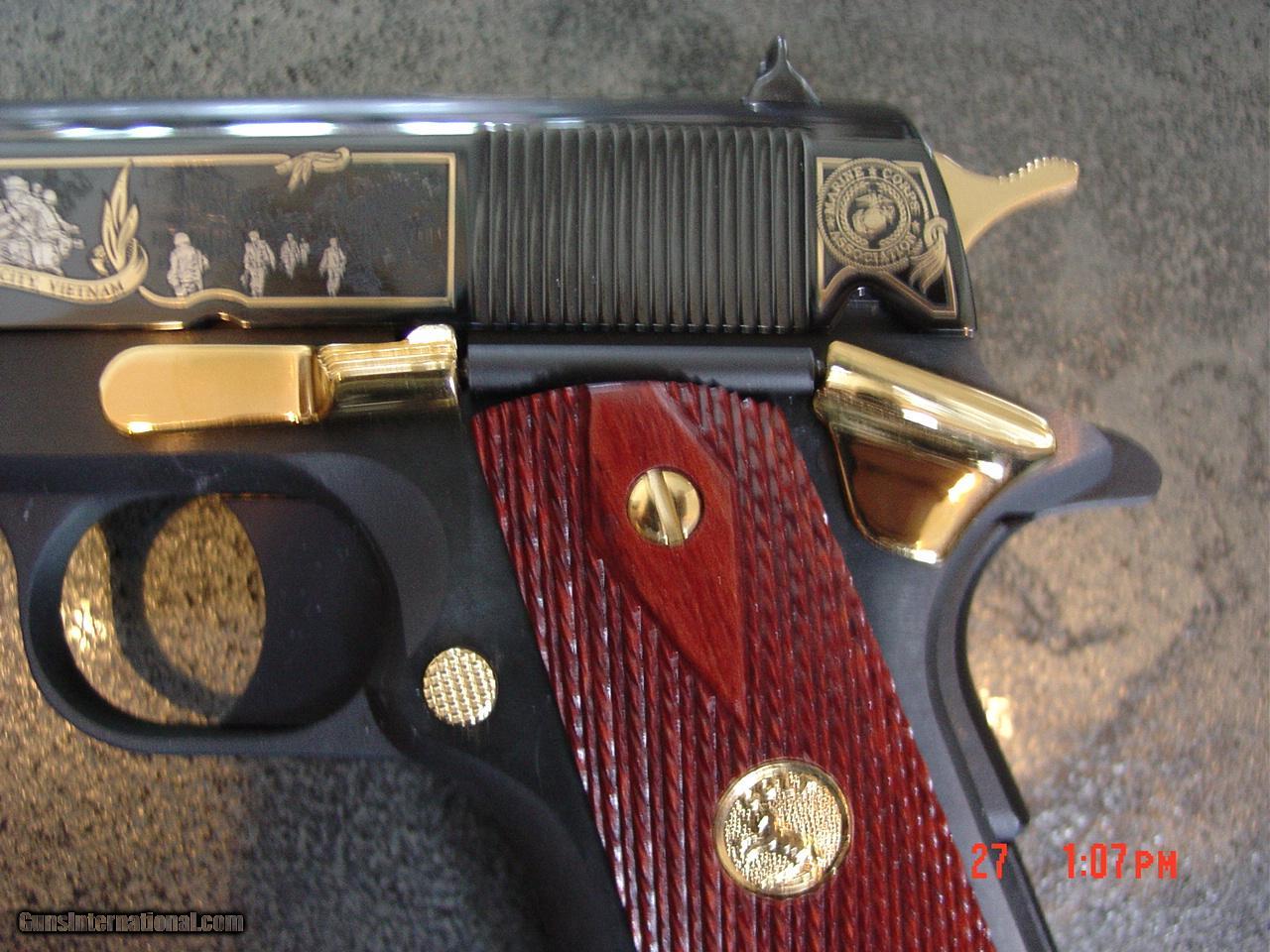 Colt 1911,The Leatherneck Vietnam Tribute Pistol,gold & silver engraved,#77 of 500,Pres case,Colt case,Rosewood grips,RARE ! awesome !!