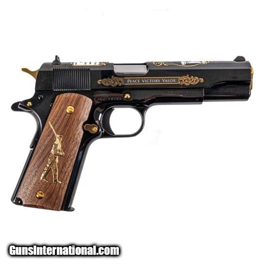 Description: Guns Listing ID: 556661 COLT 1911 TOTUS .45 ACP 1 of 500 Left Slide: “Tomb of the Unknown Soldier 1921 100th Anniversary 2021” Right Slide: “Peace Victory Valor” Colt Logo Slide Top: Tomb Sentinel/Tomb, “Here Rests in Honored Glory an American Soldier Known but to God” Colt Trident Grips: Walnut Grips with Gold Medallion Sentinel Soldier Challenge Coin Included SOLD Manufacturer: COLT Model: 1911 TOTUS Caliber Info: .45 ACP Condition: new Barrels: 5" barrel Finish: BLUED |