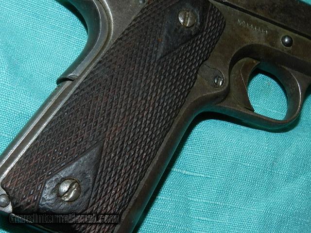 Description: A good working Colt made 1911 with original finish. The exterior metal has faded blue on the slide and the frame is about all grey. Left side has a AA marking (Augusta Arsenal) possibly for a rework after WWI. Has the military proof in a circle on the left side also. Has a very clean, shiny strong rifled bore. Some parts may have been changed at the arsenal after the war, but the gun looks good. Left side of the slide has very fine nicks from storage, but nothing too deep and ugly. The American walnut diamond grips look original and still have strong cuts.SN 1434XX. Comes with one blue mag. Respectable WWI era U.S military pistol. Due to the high volume of emails, I can’t keep up with over 200 a day, please be patient, when corresponding thanks . We don’t have asite .I prefer money orders or a check. Item ships when funds come in. If you can only pay with a card let me know. I’m sorry I don’t list my phone number, did that for 30 days, never again.. I can’t talk on the phone all day…who will ship the guns? I’m just one person, and it’s very busy here! I do a brisk volume! I hope you like my wide selection of unusual guns, knives and gun parts. Shipping price determined by zip code. I try to keep the prices affordable, which means I make less money than most dealers. You won’t get altitude sickness with my prices! I consistently have the best selection of older guns If you BUY IT NOW you must still contact us for details buy it now doesn't end the sale, it just sends an email telling us you want to buy this gun. A phone call won’t secure a sale! Not home many times, the first buyer by email buys the gun !Thissite does not close down a sale when you do a BUY IT NOW like Ebay! I can get six buy it nows in an hour, first buyer to email gets the guns, others are in second place! Best to send another email . Sometimes not home to get calls. Some guns are required shipment to a gun dealer near you for a transfer to you when it arrives. With the widest selection of older guns at great prices, We don’t have a store, and sell on the internet only. SOLD Curio/Relic: Yes |