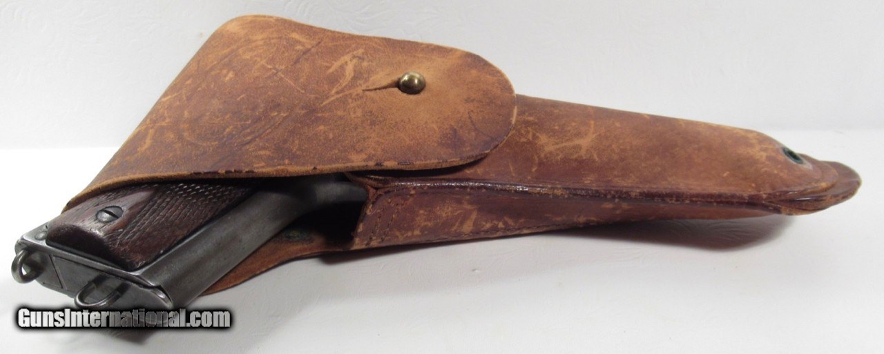 Description: Colt 1911 – 45 Military Semi-Auto; Serial No. 30952; Produced in 1913; Lots of Original Finish; Good Action and Bore; Original BOYT J.R.J. Holster; Original in All Respects (See Photos); Nice 107 Year-Old U.S. 1911; LIQUIDATING PERSONAL COLLECTION; Price: $2,900 + $30 S&H; Price includes insured shipping; return policy: three days inspection from the date the item is received; full refund of shipping both ways ONLY IF THE ITEM IS MISREPRESENTED. SOLD Manufacturer: Colt Model: 1911 Serial Number: 30952 |