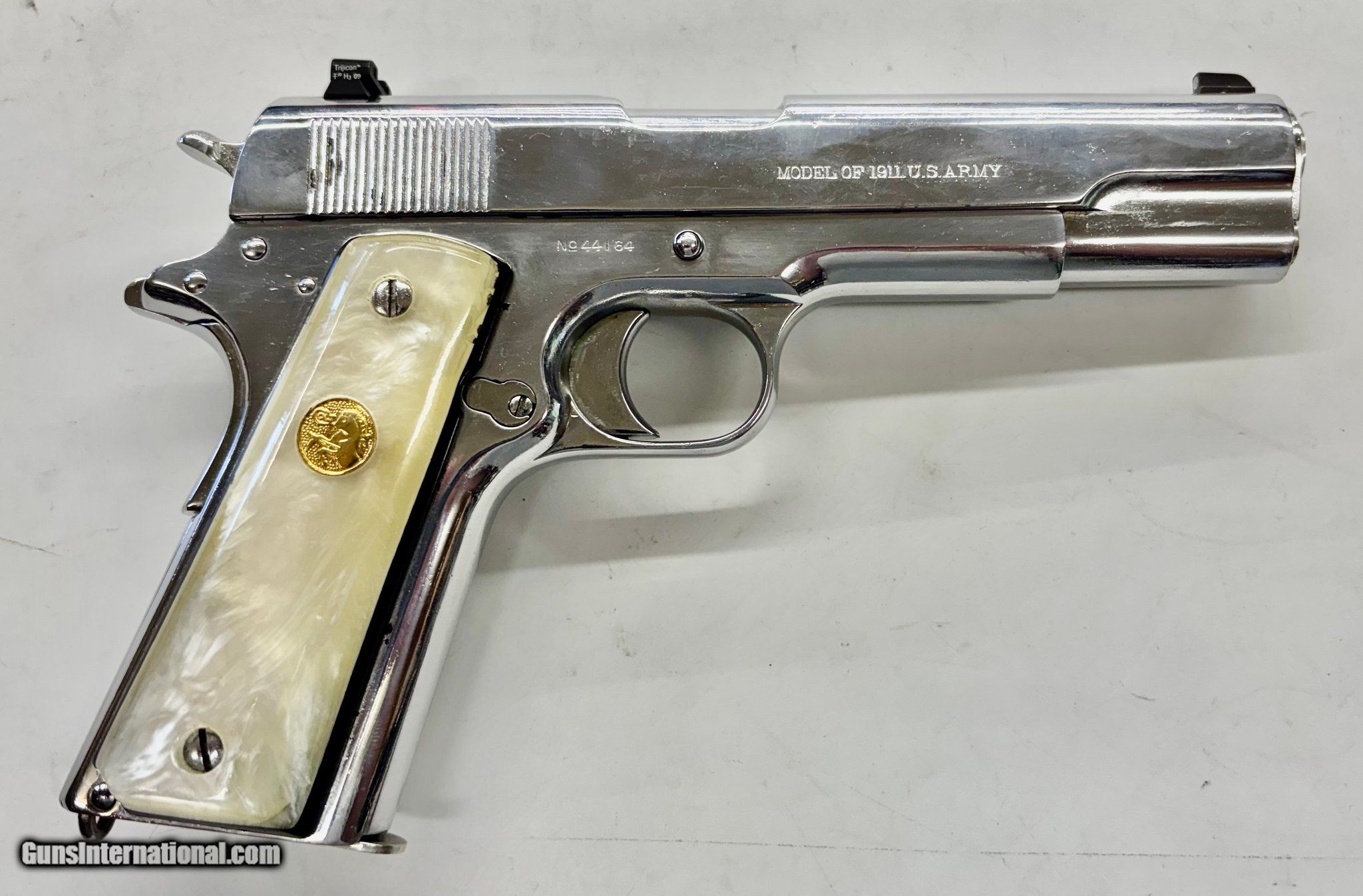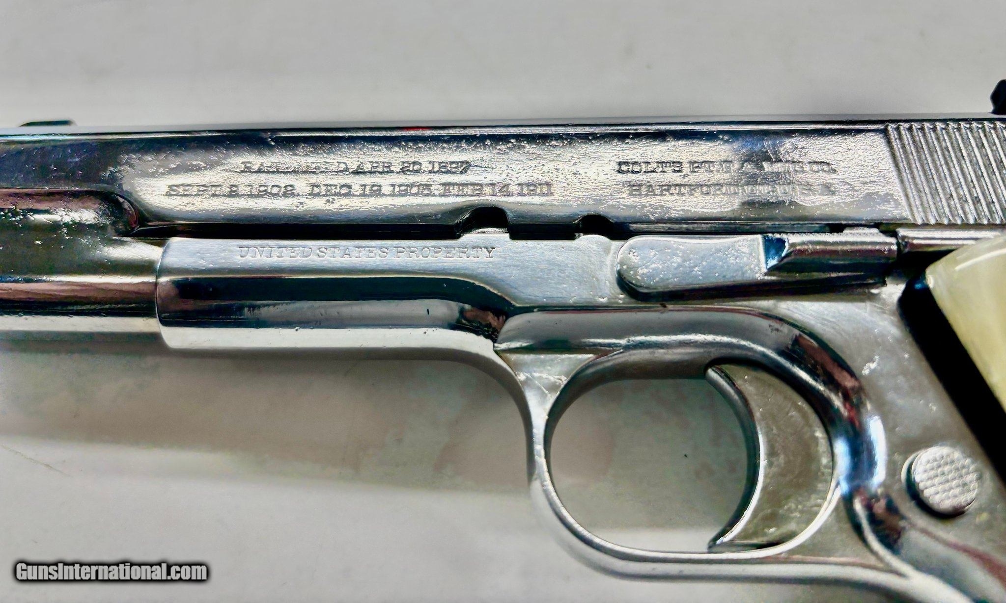 Description: Guns Listing ID: 495527 Colt 1911 manufactured in 1913. Has been nickel plated. SOLD Manufacturer: COLT Model: 1911 US Army Caliber Info: .45 ACP Condition: Used - Non-Certified Barrels: 5 BARREL Finish: nickel |