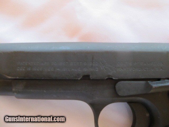 Description: colt 1911 us army 1911 45 acp. built 1918. refurb./parkerised by the army.very nice condition. marked "united states property" and "model of 1911us army SOLD Manufacturer: colt Model: 1911 Condition: excellent |