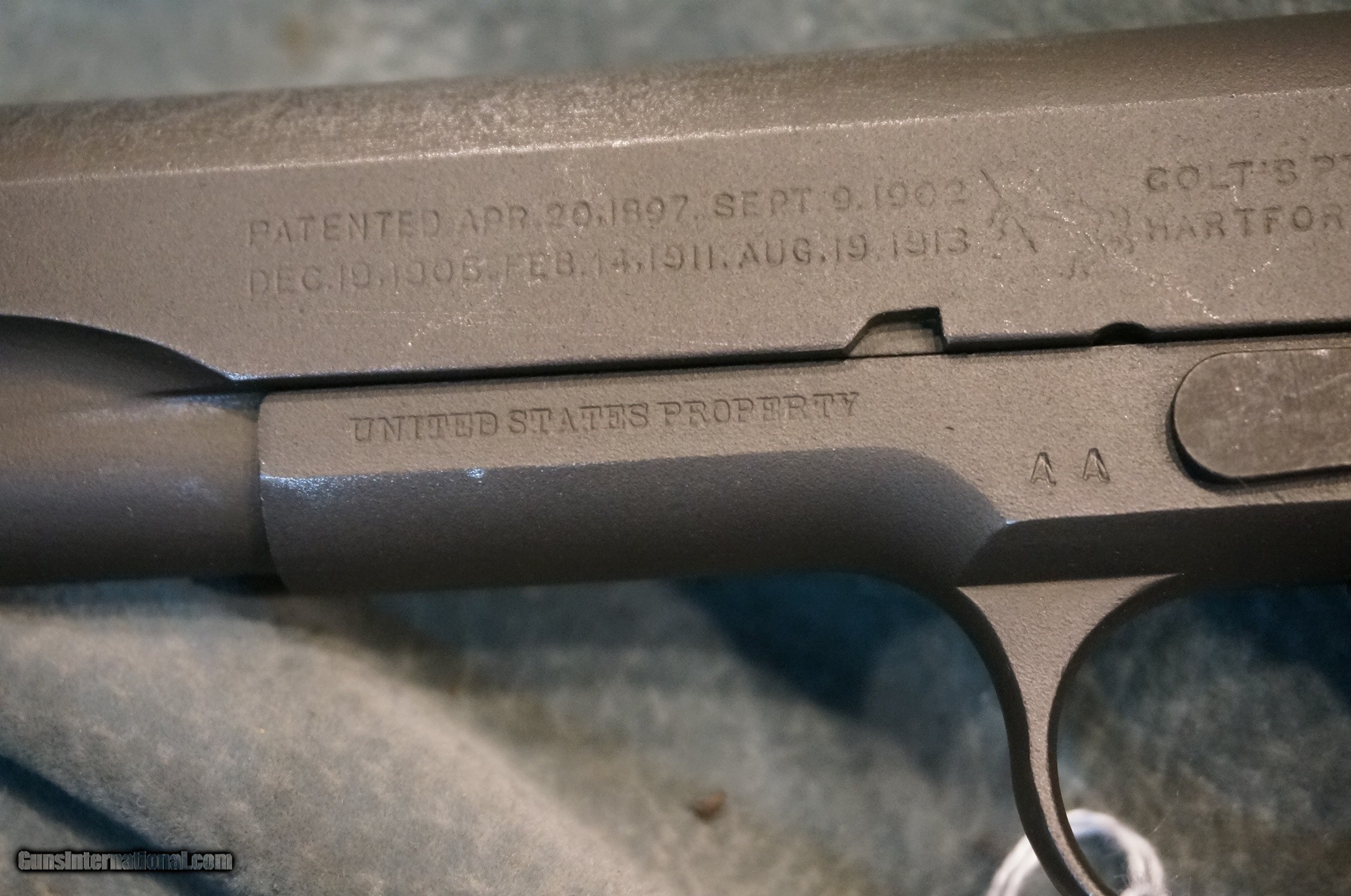 Description: Colt 1911 US Army 45ACP AA Augusta Arsenal marked 1911 United States Property marked frame,serial #84882,made in 1914,M1911A1 U.S.Army slide,parkerized finish,scarce arsenal variation.If it could only talk. GUN COLLECTIONS WANTED FOR CASH! We buy, sell, consign and trade new and used firearms.We will pay finders fees and travel for large collections. This is our 45th year in business. We offer 90 day layaways with 20% down. No return on layaways. Firearms will need to be transferred through a FFL dealer. Prices reflect a cash discount. There will be 3% added to credit card sales. We trade for gold and silver. THANK YOU! SOLD |