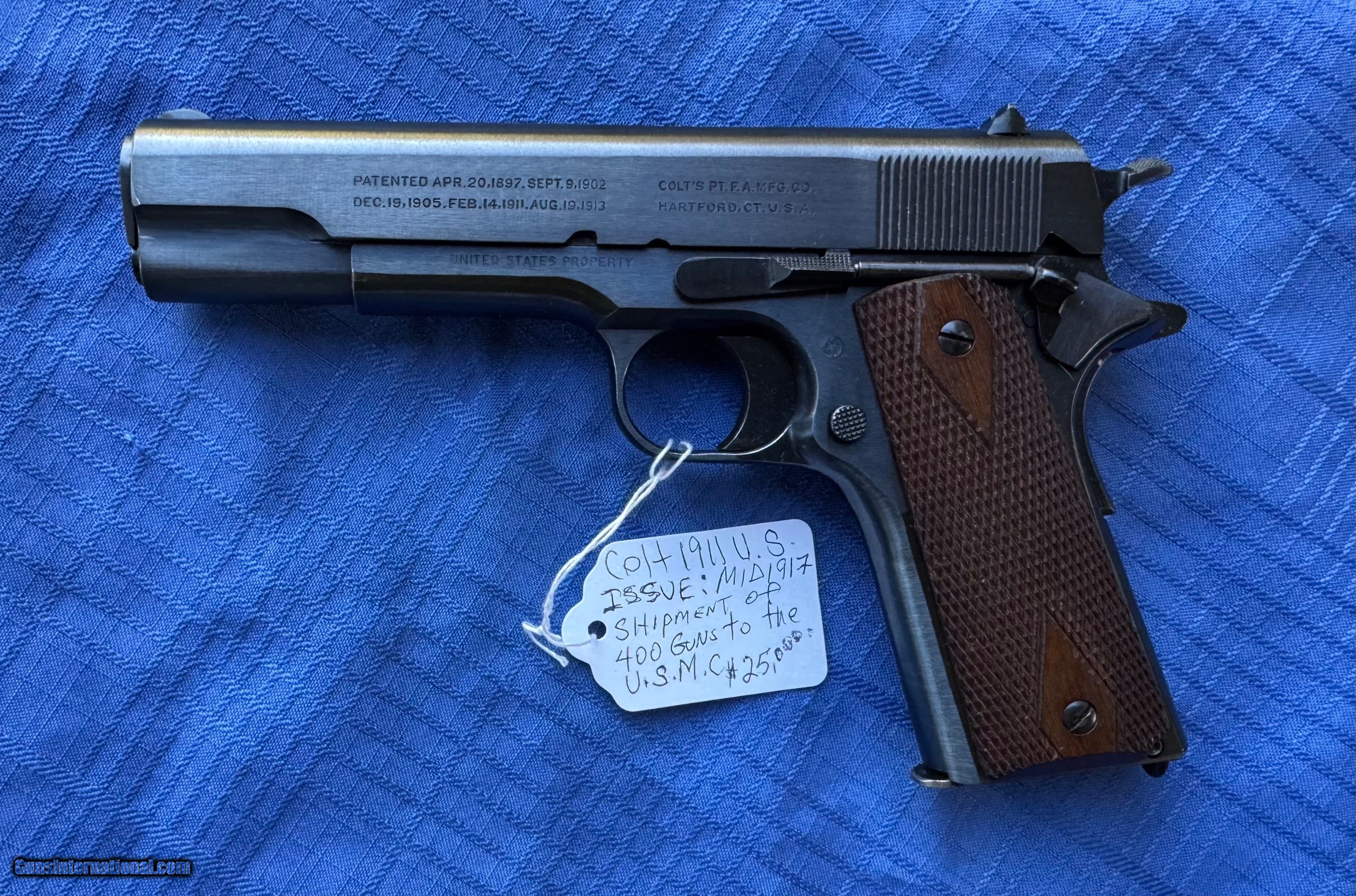 COLT 1911 WW1 ISSUED to the U.S.M.C. In a 400 gun shipment in first shipment in 1917