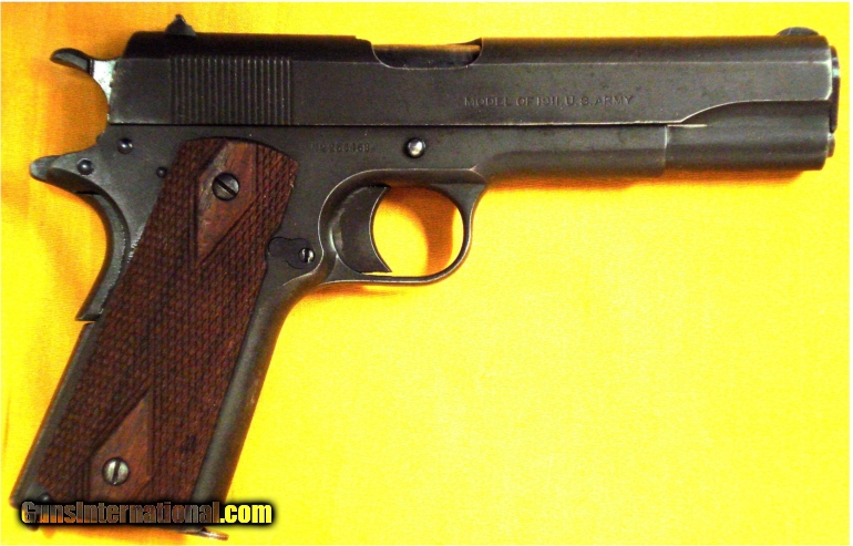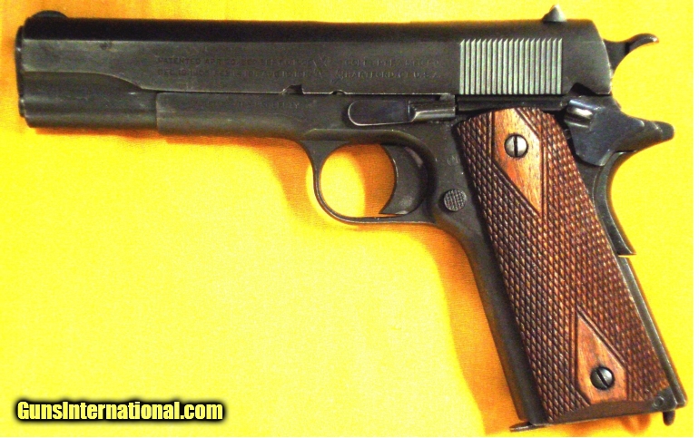 Description: COLT model 1911 (WWI) in .45 ACP CAL., with 5" barrel. Color PARKERIZED. THIS WWI COLT IS IN EXC. OVERALL CONDITION RETAINING 95% WWII PARKERIZED FINISH. JM INSPECTOR MARKED. EXC. BORE WITH STRONG RIFLEING. Condition 95%. SOLD |