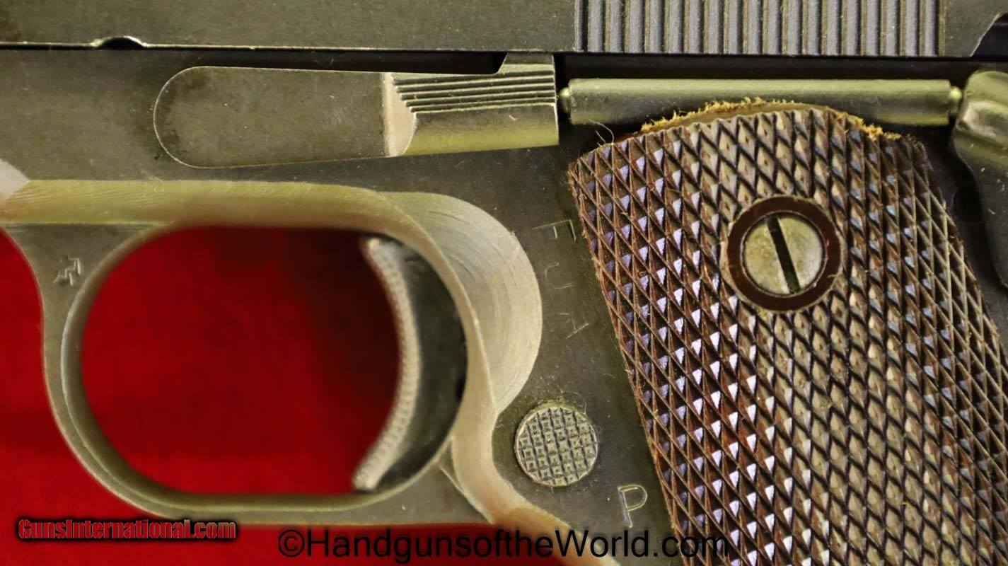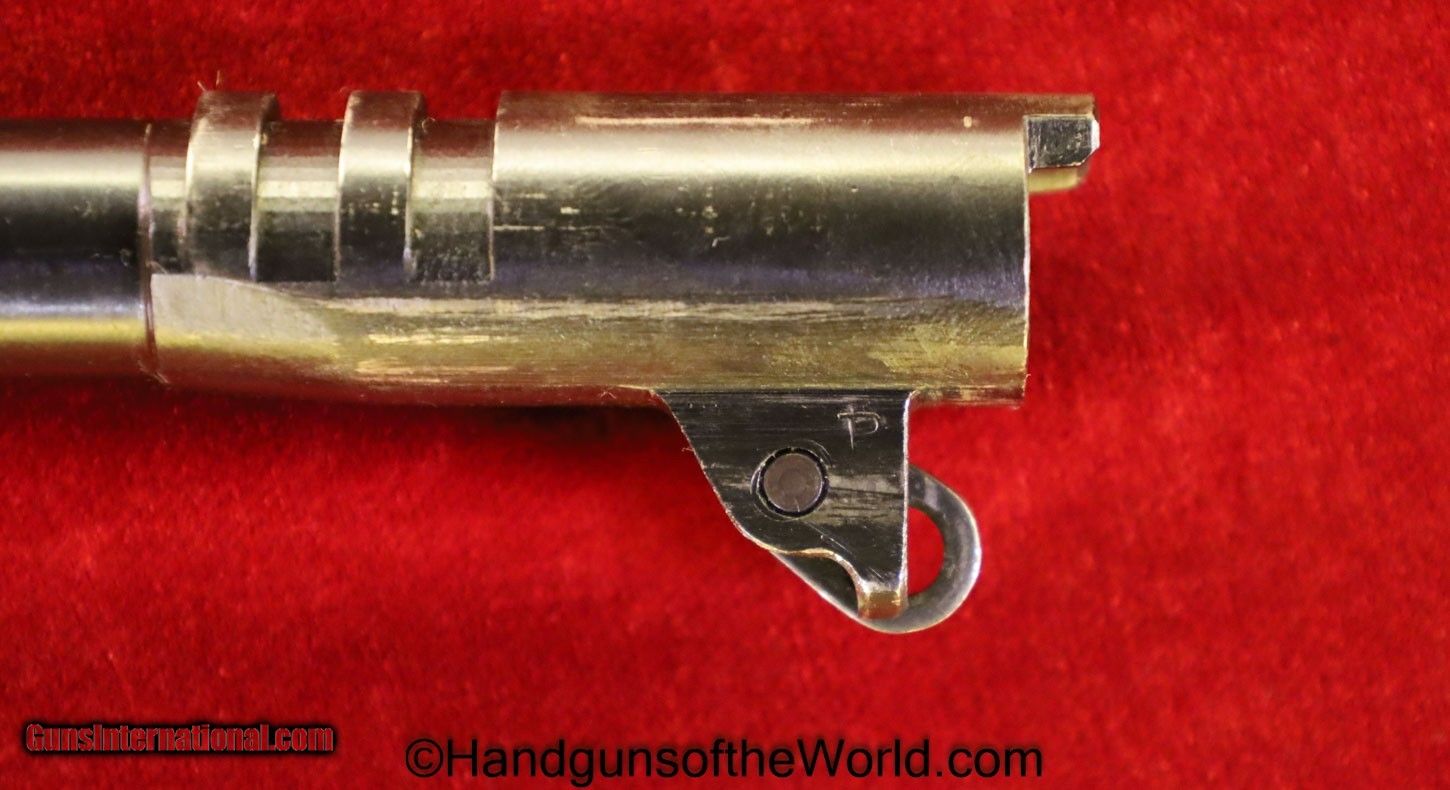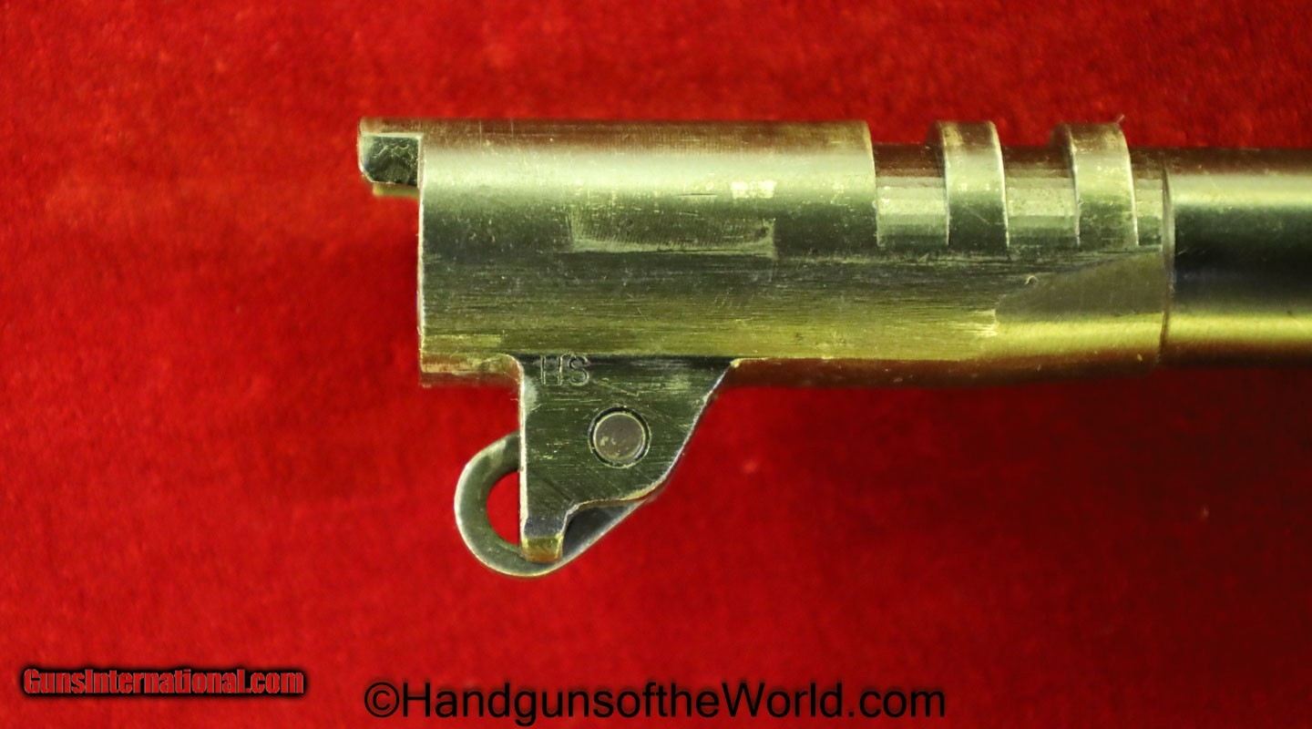 Description: Ithaca 1911A1, .45 acp. This is marked on the right frame United States Property and is military inspected FJA. This has all correct WWII era parts to include the HS=High Standard Barrel and an L-MS Little magazine. This is outstanding with 99+% finish and the bore is excellent. This package includes a new made Kraft box and an extra L marked magazine. Curio/Relic: Yes Handgun Caliber: .45 ACP (.45 Auto) Manufacturer: Ithaca Model: 1911A1 Price: $4,975.00 Shipping: $35.00 Contact Seller |