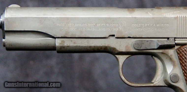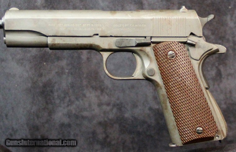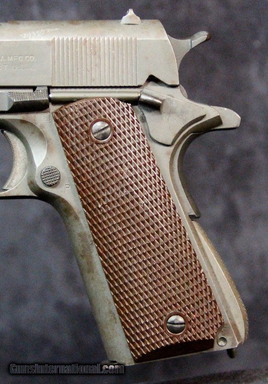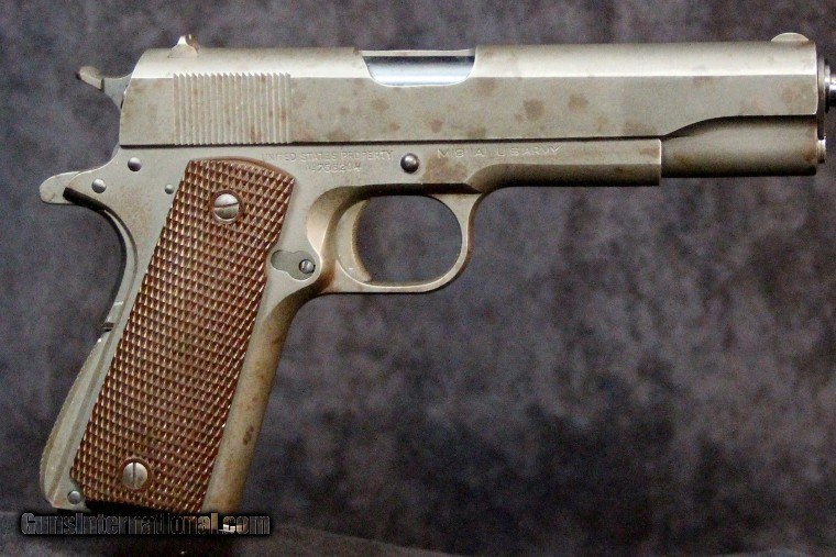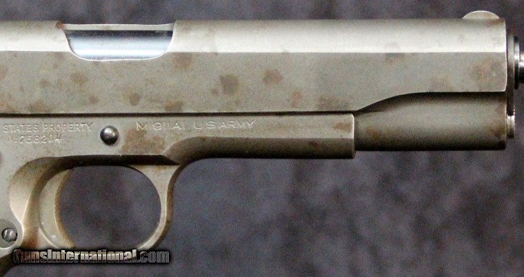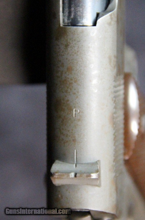 Description: .45acp, #758204, 5 inch barrel, parkerized finish, plastic 2 piece grips, original sights, no proofs on barrel, 1942. Condition: excellent bright bore, 99% finish, some spots on finish, can't tell what caused them, excellent grips, excellent mechaniclly, excellent marks. SOLD Curio/Relic: Yes |