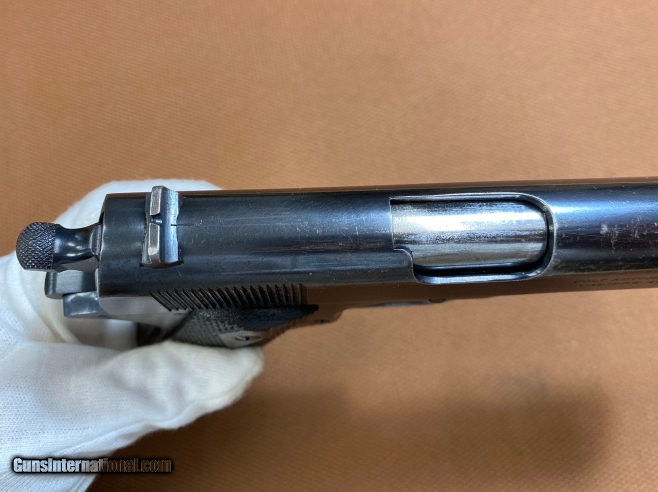 Description: *** SOLD*** Colt 1911 Commercial made in 1916 in excellent condition in 45 acp, with letter from Colt. This is a beautiful pistol with all 100% correct parts! The finish is very strong and it appears to be original. It comes with correct type 3 two one Colt (unmarked) magazine. This is very hard to find piece, especially in this condition and originality! $85 Shipping will be UPS with insurance to Continental US only (contact us or AK or HI). SOLD Handgun Caliber: .45 ACP (.45 Auto) |