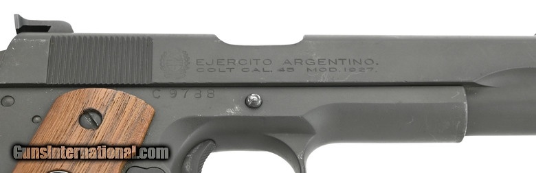 Description: Colt 1927 .45 ACP caliber pistol. Argentine Military pistol with parkerized finish and target sights. Excellent condition. SOLD |