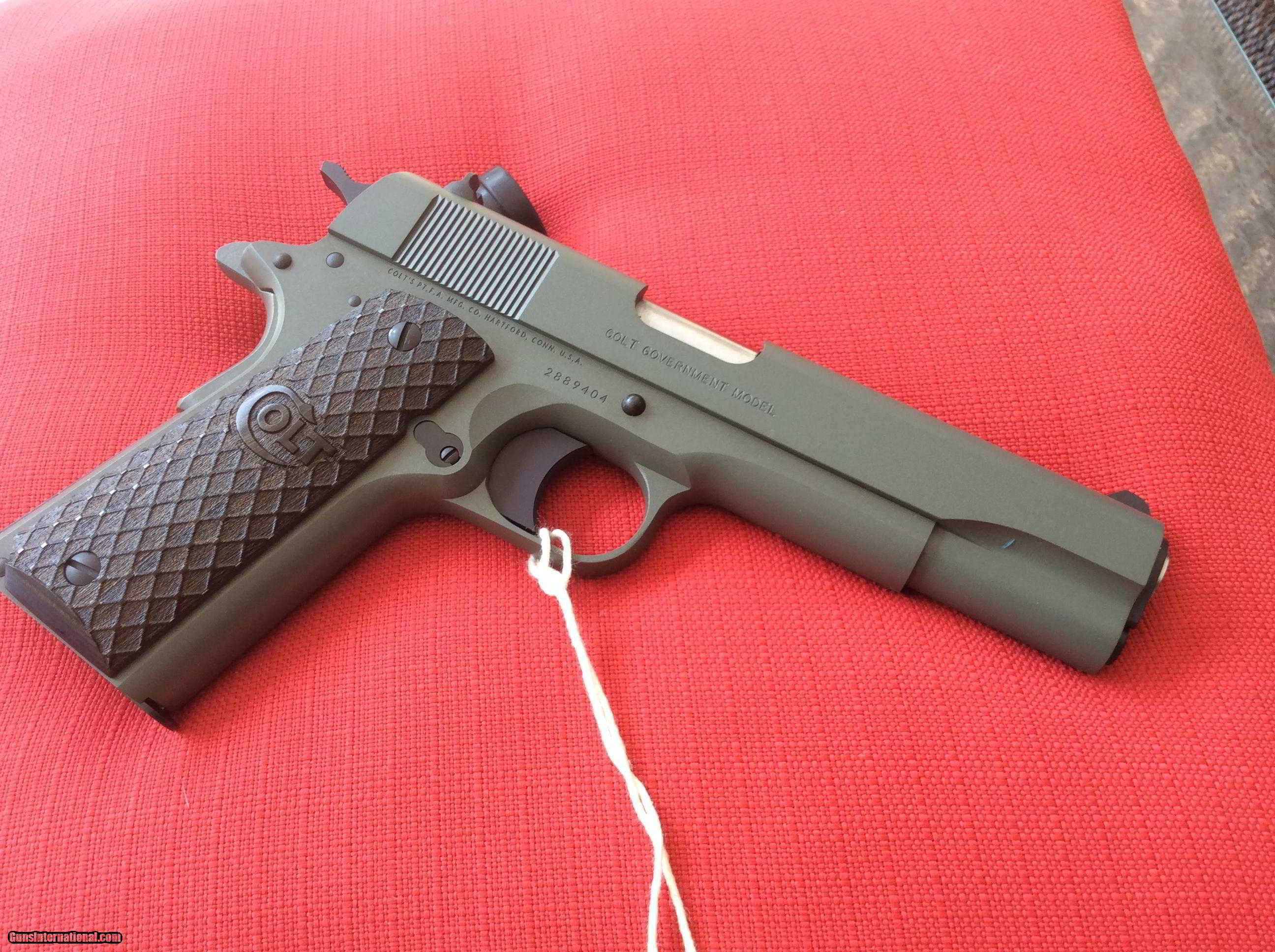 Description: Colt 1991 Talo Custom .45 in Foliage Green black Hatch grips NIB. 5 inch barrel two 7 round mags. Beautiful piece. Check out my other fine Colts. Shipping free ffl to ffl. SOLD Manufacturer: Colt Talo Model: 1991T Caliber Info: .45 ACP Condition: NIB Metal Condition: NIB Wood Condition: NIB Bore Condition: NIB |
