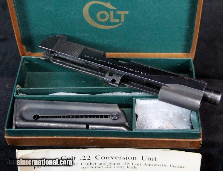 Description: "For Converting .45 Caliber and Super .38 Colt Automatic Pistols to Caliber .22 Long Rifle" excellent condition, in original box, box is in very good condition, pamphlet has separated at the folds. SOLD |