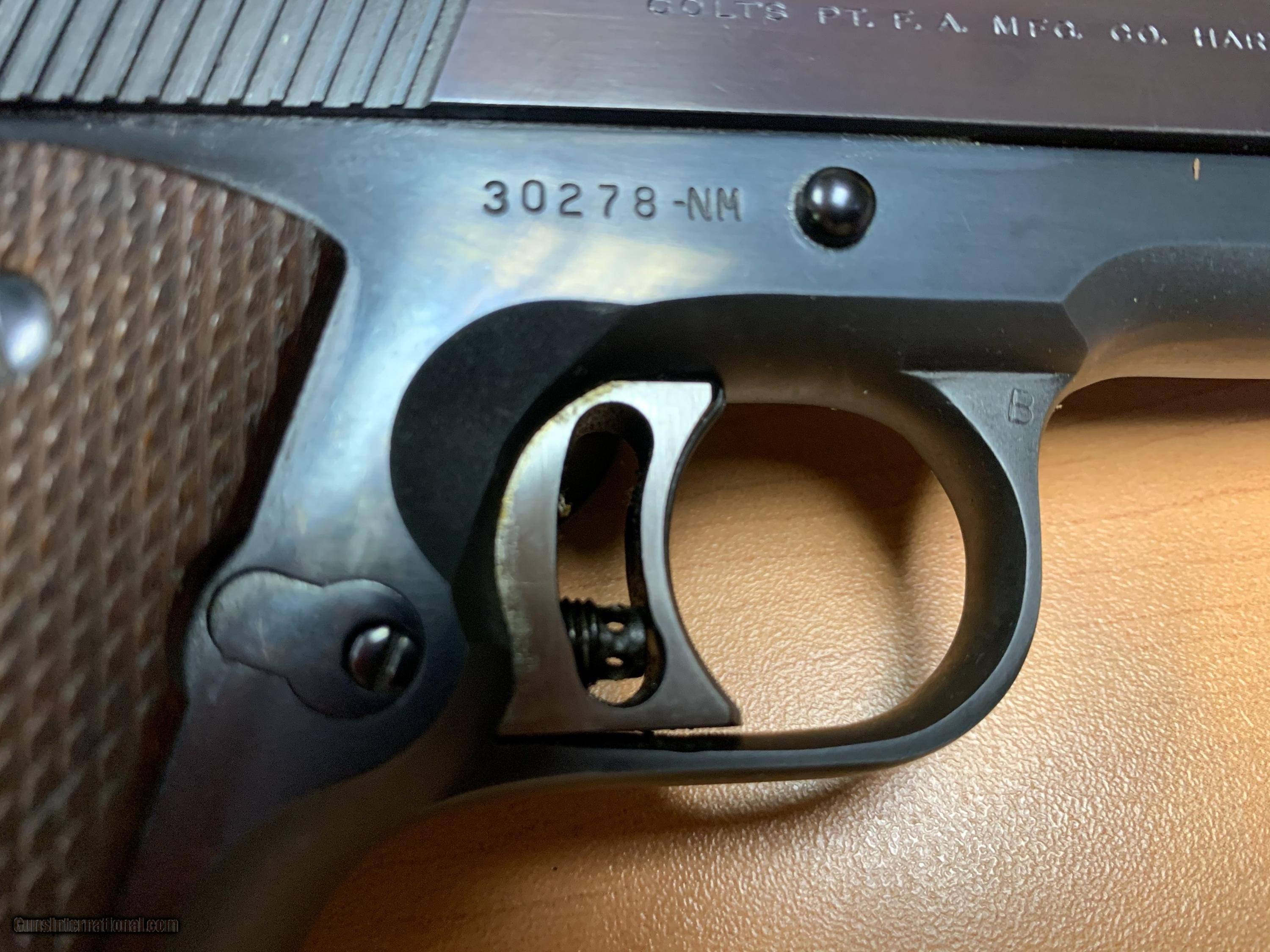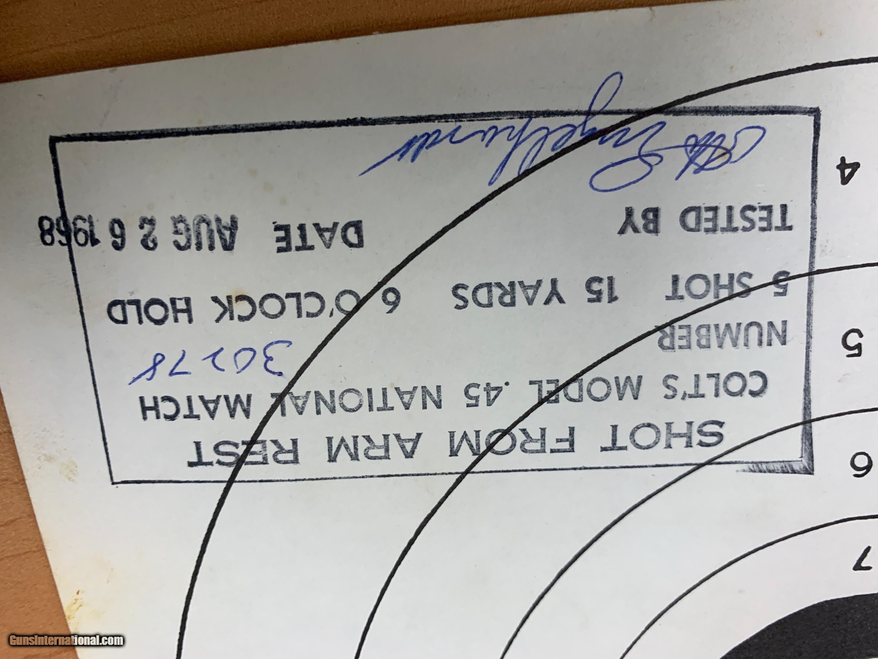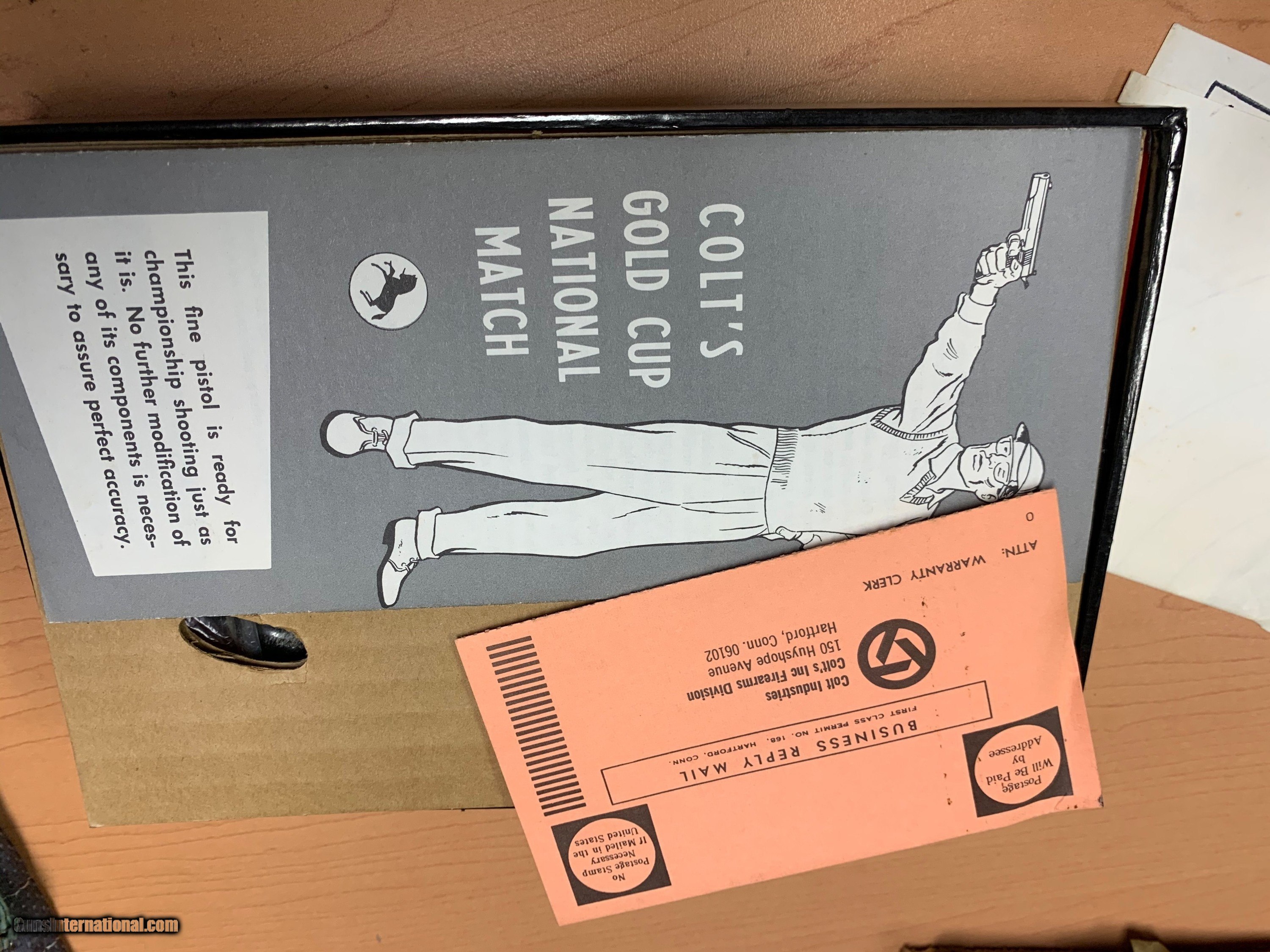Description: Sale pending. Colt .45 ACP Gold Cup National Match sn. 30278NM built in 1968 with box, paperwork and original test target (see photos). This gun is in “as new” condition possibly factory test fired only. Selling for an estate. Shipping and insurance paid by the purchaser. Three-day inspection period applies. This gun must ship to purchaser’s FFL. $2500 OBO SOLD Serial Number: 30278NM Condition: As NIB |