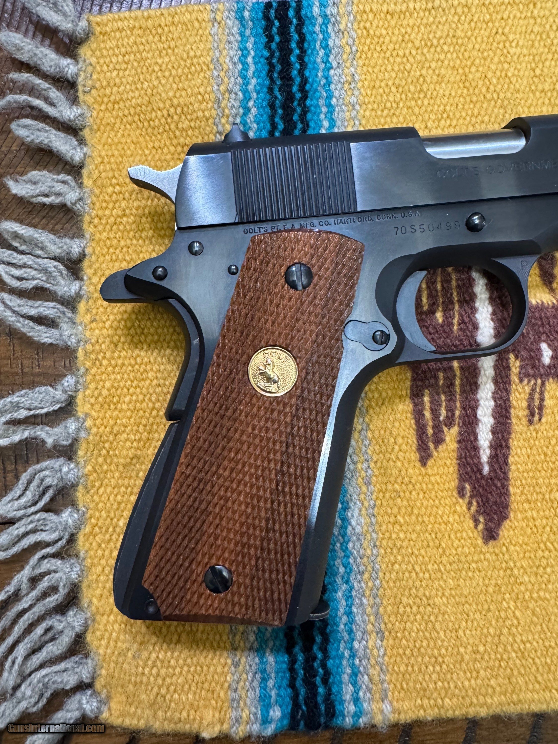 Description: Near mint condition on this 1982 Colt 9mm Styer in all original condition.Prior to 1980 1,000 of these pistols were made for Italy and 100 of them were made for warranty purposes. When the warranty period expired these 100 reserved pistols were sold to the US market. This pistol is believed to be one of those 100 reserved based on the shipping date. Not California Compliant. Price: $1,650.00 Contact Seller |